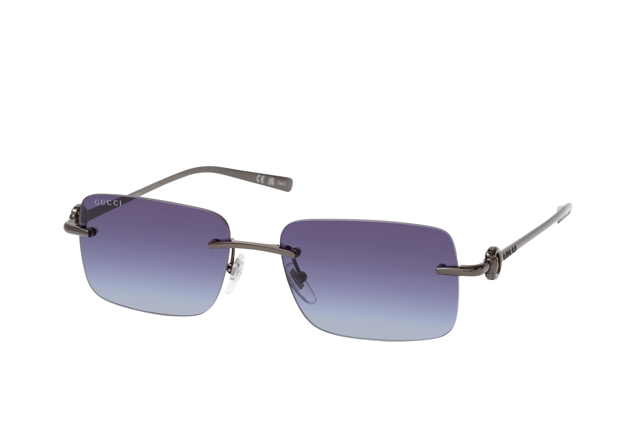 Gucci GG 1703S 006, Rechteckige Sonnenbrille Herren. Farbe: Grau, Größe: Medium, Rahmentyp: FRAMELESS, Brillenbreite: 140mm, Glashöhe: 38mm, Material: Metall. Stegbreite: 17mm. Glasfarbe: Blau. Mit UV400-Filter. Hersteller: Kering Eyewear DACH GmbH. Style: