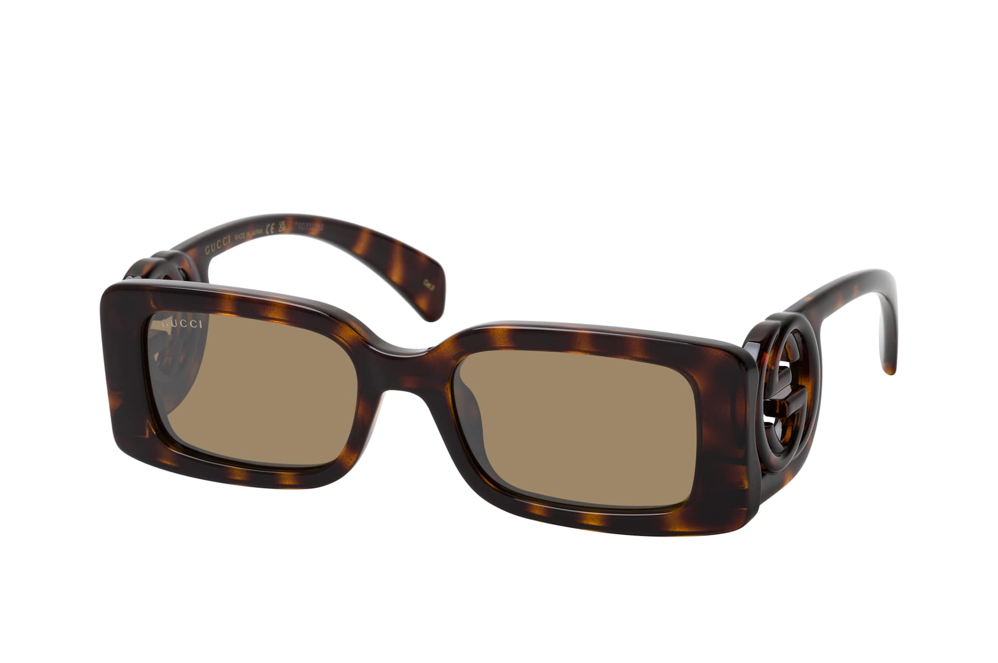 Gucci GG1325S 012, Rechteckige Sonnenbrille Damen. Farbe: Havana, Größe: Medium, Rahmentyp: FULLFRAME, Brillenbreite: 145mm, Glashöhe: 36mm, Material: Kunststoff. Stegbreite: 19mm. Glasfarbe: Braun. Mit UV400-Filter. Hersteller: Kering Eyewear DACH GmbH. Style:
