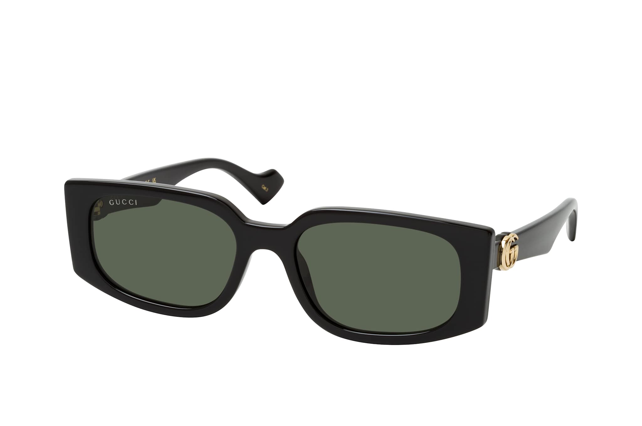 Gucci GG1534S 001, Rechteckige Sonnenbrille Damen. Farbe: Schwarz, Größe: Medium, Rahmentyp: FULLFRAME, Brillenbreite: 143mm, Glashöhe: 37mm, Material: Kunststoff. Stegbreite: 18mm. Glasfarbe: Grau. Mit UV400-Filter. Hersteller: Kering Eyewear DACH GmbH. Style: