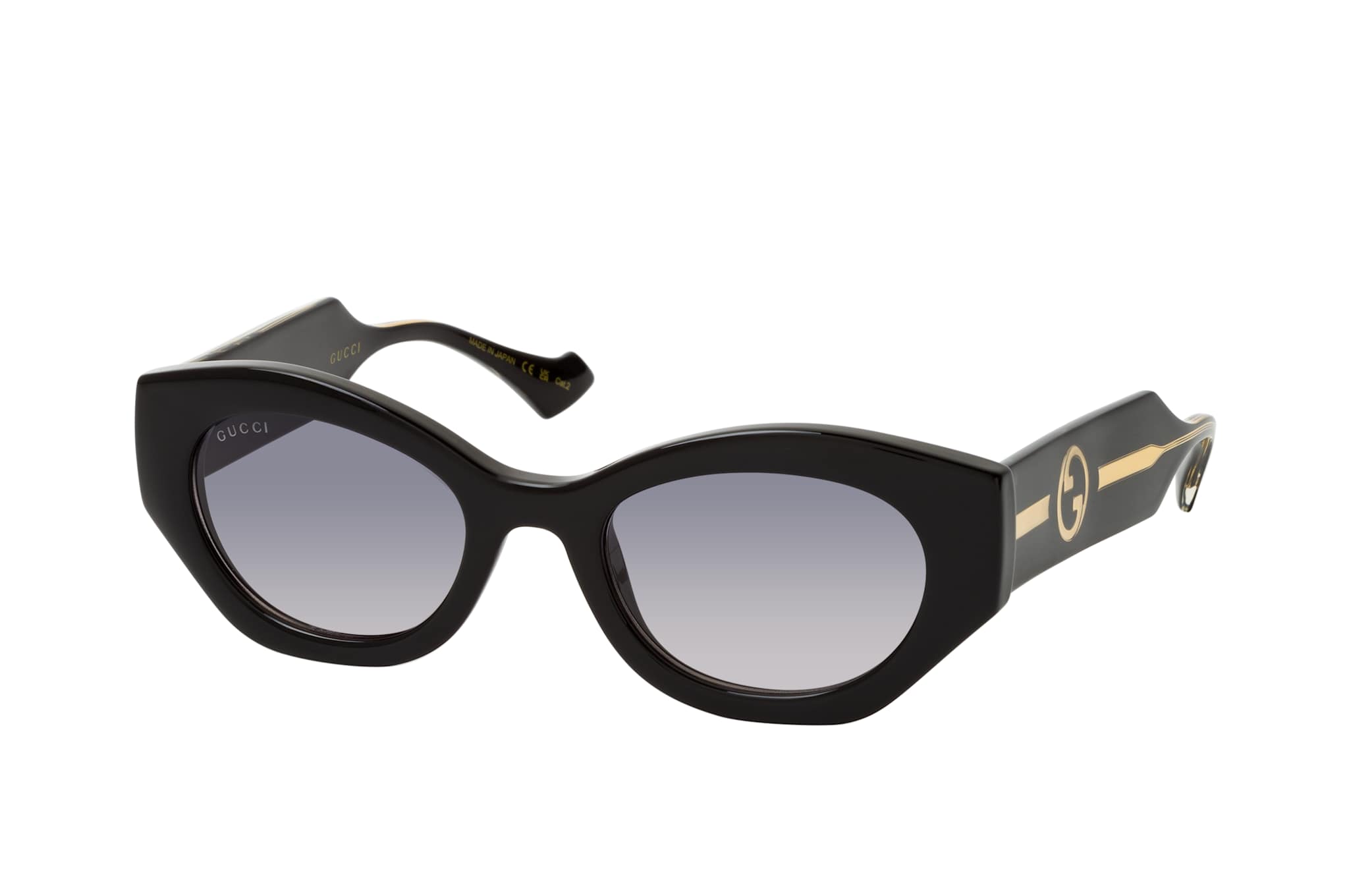 Gucci GG1553S 001, Sonnenbrille Damen. Farbe: Schwarz, Größe: Medium, Rahmentyp: FULLFRAME, Brillenbreite: 143mm, Glashöhe: 38mm, Material: Kunststoff. Stegbreite: 21mm. Glasfarbe: Grau. Mit UV400-Filter. Hersteller: Kering Eyewear DACH GmbH. Style: