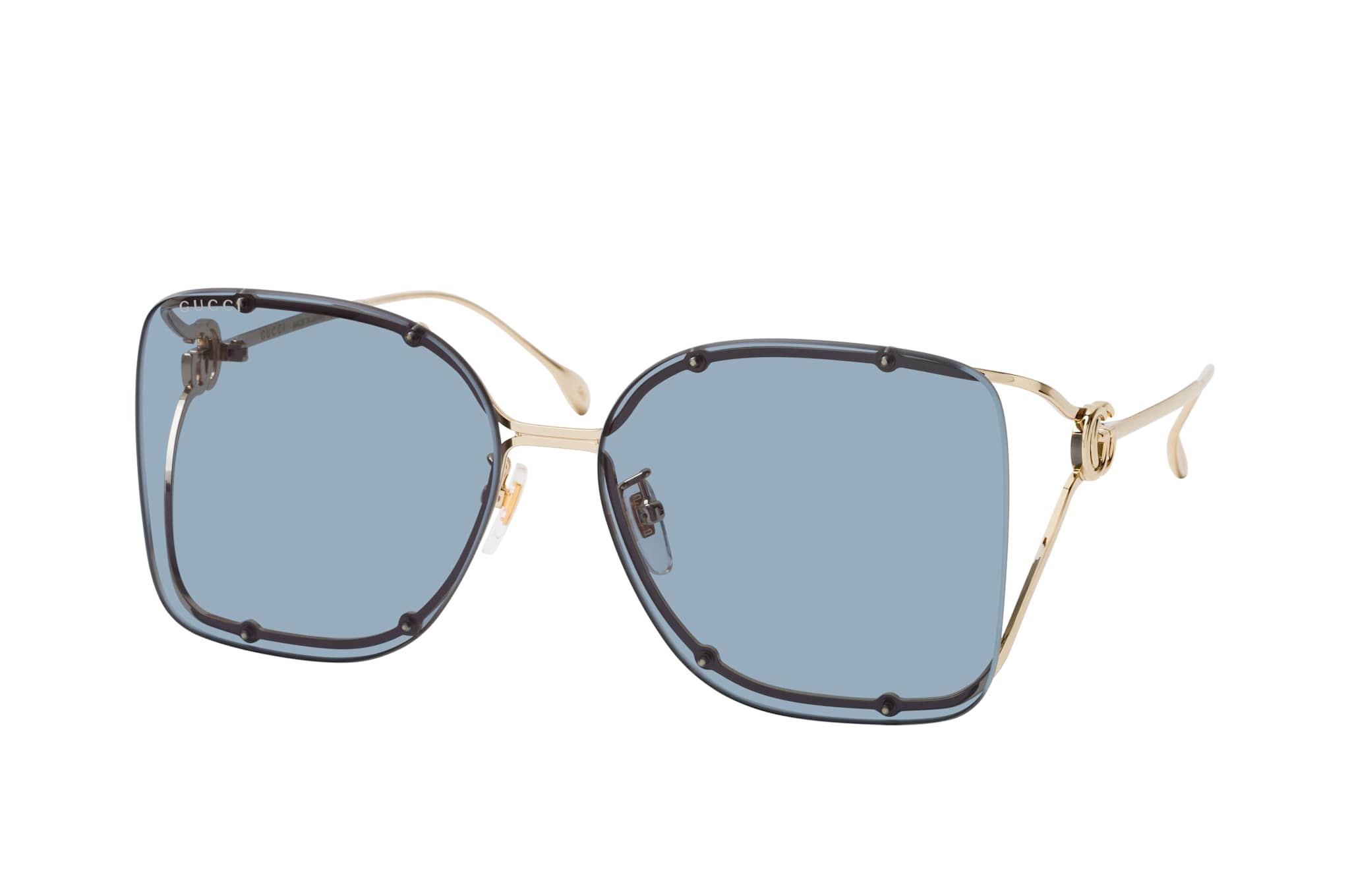 Gucci GG1713SA 001, Quadratische Sonnenbrille Damen. Farbe: Goldfarben, Größe: Medium, Rahmentyp: FRAMELESS, Brillenbreite: 140mm, Glashöhe: 55mm, Material: Metall. Stegbreite: 15mm. Glasfarbe: Grau. Mit UV400-Filter. Hersteller: Kering Eyewear DACH GmbH. Style: