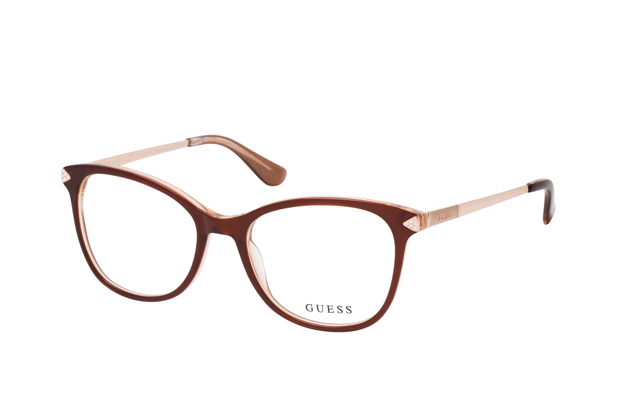 Guess GU 2632-S 047, Cat Eye Brille Damen. Farbe: Braun, Größe: Medium, Rahmentyp: FULLFRAME, Brillenbreite: 133mm, Glashöhe: 43mm, Material: Kunststoff/Metall. Stegbreite: 17mm. Glasfarbe: . Glasmaterial: Metall/Kunststoff.Hersteller: Marcolin SpA. Style: MODERN