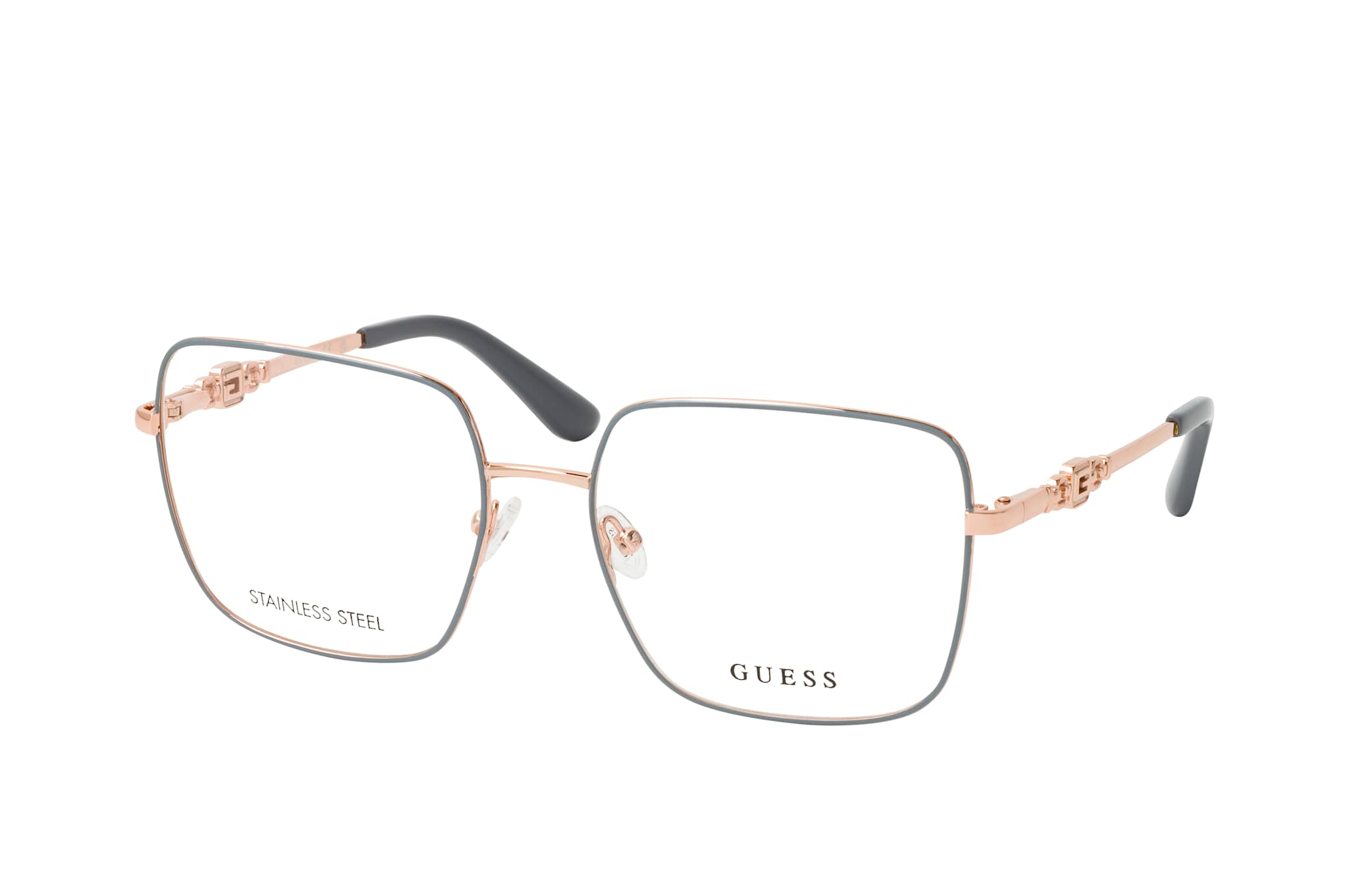 Guess GU 2953 020, Quadratische Brille Damen. Farbe: Grau, Größe: Medium, Rahmentyp: FULLFRAME, Brillenbreite: 139mm, Glashöhe: 49mm, Material: Metall. Stegbreite: 17mm. Glasfarbe: . Glasmaterial: Metall/Metall.Hersteller: Marcolin (Deutschland) GmbH. Style: