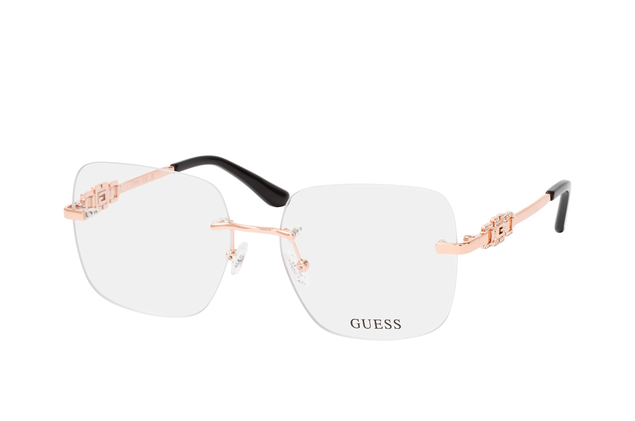 Guess GU 50319 028, Quadratische Brille Damen. Farbe: Roségold, Größe: Medium, Rahmentyp: FRAMELESS, Brillenbreite: 135mm, Glashöhe: 49mm, Material: Metall. Stegbreite: 16mm. Glasfarbe: . Glasmaterial: Metall/Metall.Hersteller: Marcolin SpA. Style: