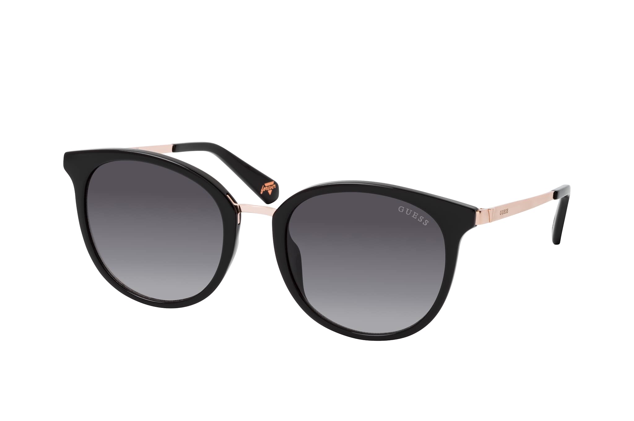Guess GU 5212 01B, Runde Sonnenbrille Unisex. Farbe: Schwarz, Größe: Medium, Rahmentyp: FULLFRAME, Brillenbreite: 145mm, Glashöhe: 49mm, Material: Kunststoff/Metall. Stegbreite: 20mm. Glasfarbe: Grau. Mit UV400-Filter. Hersteller: Marcolin SpA. Style: MODERN