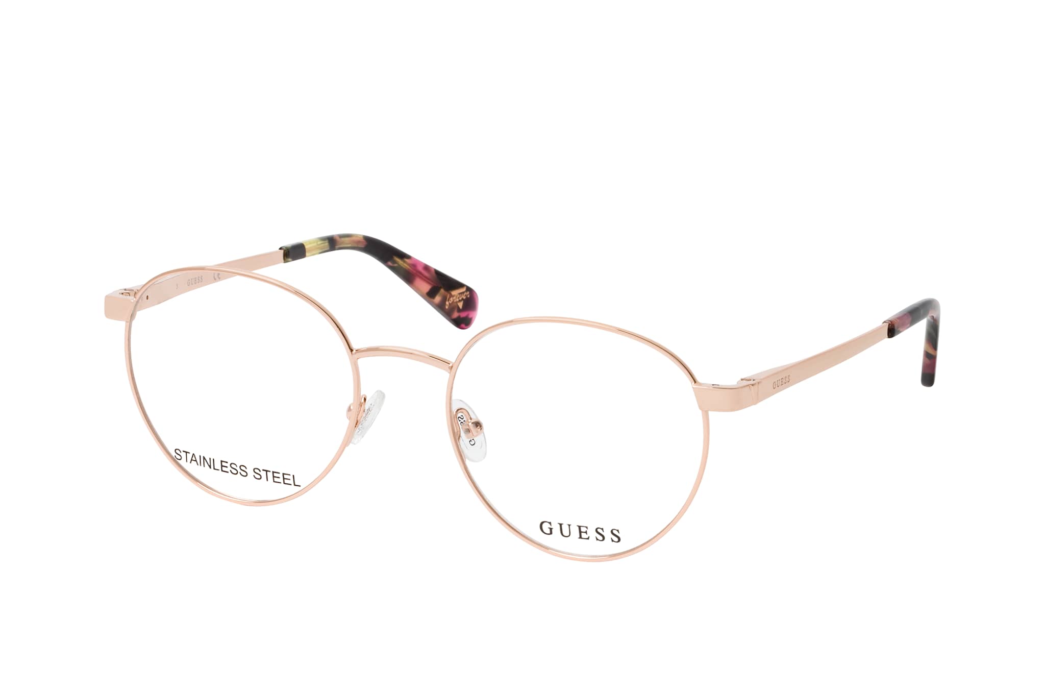 Guess GU 5221 028, Runde Brille Damen. Farbe: Roségold, Größe: Medium, Rahmentyp: FULLFRAME, Brillenbreite: 134mm, Glashöhe: 48mm, Material: Metall. Stegbreite: 19mm. Glasfarbe: . Glasmaterial: Metall/Metall.Hersteller: Marcolin SpA. Style: MODERN
