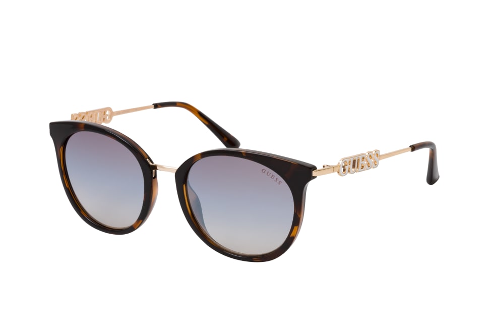 Guess GU 7645 52G, Runde Sonnenbrille Damen. Farbe: Havana, Größe: Medium, Rahmentyp: FULLFRAME, Brillenbreite: 140mm, Glashöhe: 43mm, Material: Kunststoff/Metall. Stegbreite: 20mm. Glasfarbe: Braun. Mit UV400-Filter. Hersteller: Marcolin (Deutschland) GmbH. Style: MODERN