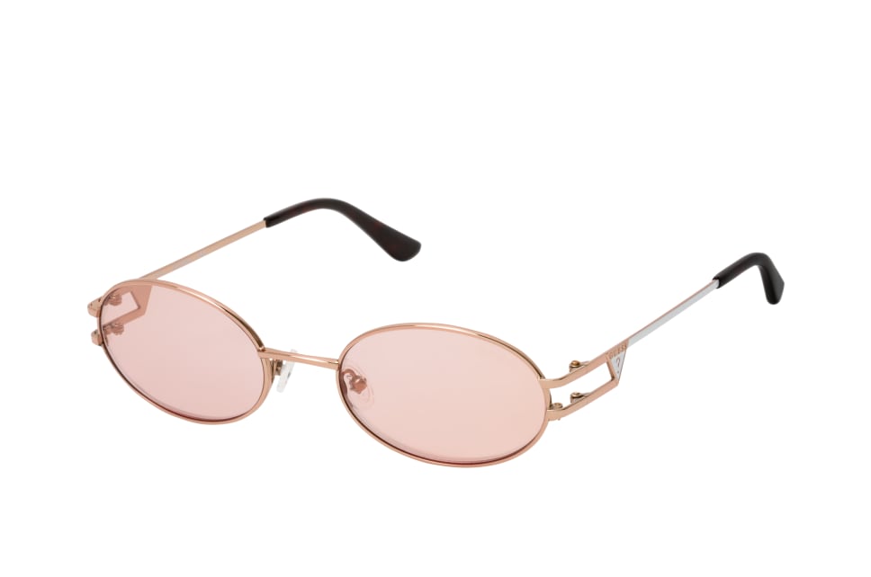 Guess GU 7659 28U, Runde Sonnenbrille Damen. Farbe: Goldfarben, Größe: Medium, Rahmentyp: FULLFRAME, Brillenbreite: 128mm, Glashöhe: 35mm, Material: Metall. Stegbreite: 19mm. Glasfarbe: Rosa. Mit UV400-Filter. Hersteller: Marcolin (Deutschland) GmbH. Style: EXTRAVAGANT