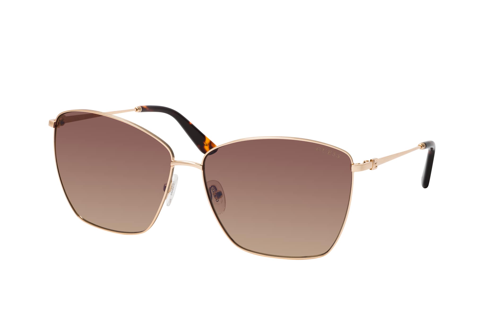 Guess GU 7745 32F, Quadratische Sonnenbrille Damen. Farbe: Goldfarben, Größe: Medium, Rahmentyp: FULLFRAME, Brillenbreite: 148mm, Glashöhe: 53mm, Material: Metall. Stegbreite: 14mm. Glasfarbe: Braun. Mit UV400-Filter. Hersteller: Marcolin SpA. Style: EXTRAVAGANT