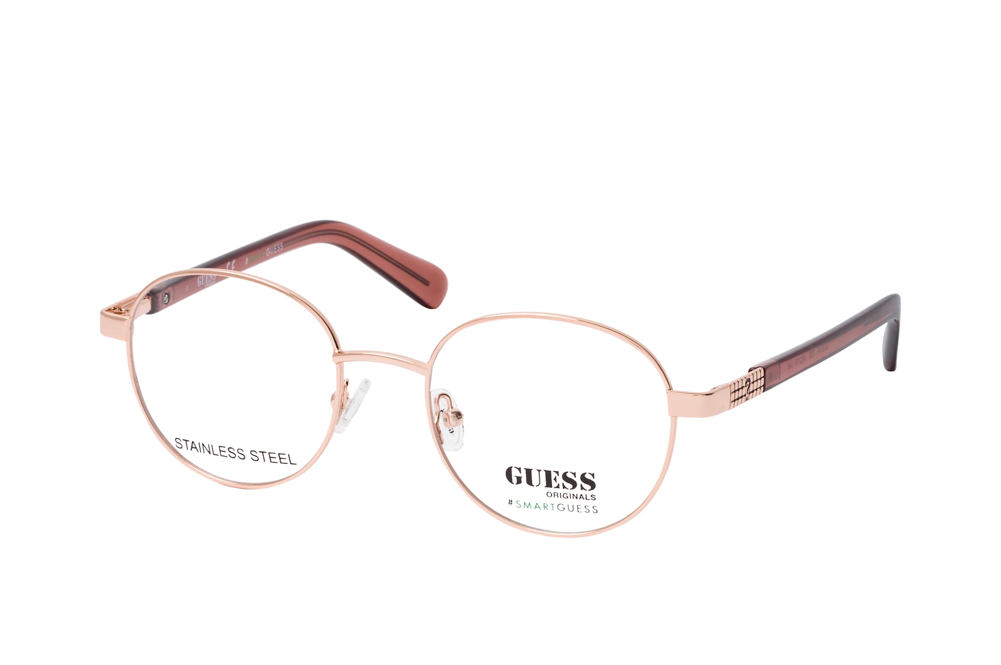 Guess GU 8247 028, Runde Brille Damen. Farbe: Roségold, Größe: Medium, Rahmentyp: FULLFRAME, Brillenbreite: 130mm, Glashöhe: 44mm, Material: Metall. Stegbreite: 19mm. Glasfarbe: . Glasmaterial: Metall/Metall.Hersteller: Marcolin SpA. Style: MODERN