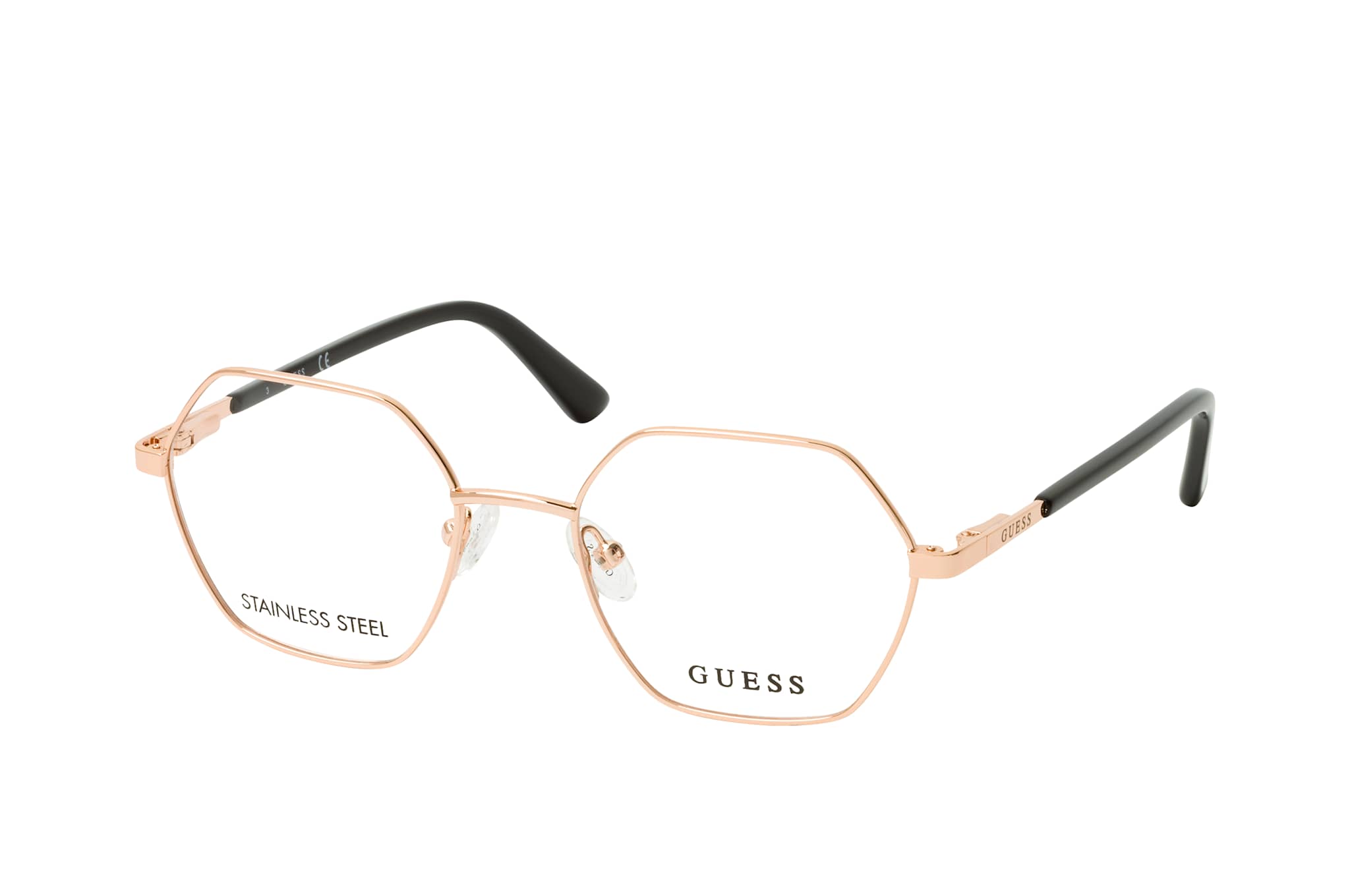 Guess GU 8275 005, Quadratische Brille Damen. Farbe: Roségold, Größe: Medium, Rahmentyp: FULLFRAME, Brillenbreite: 122mm, Glashöhe: 41mm, Material: Metall. Stegbreite: 17mm. Glasfarbe: . Glasmaterial: Metall/Metall.Hersteller: Marcolin SpA. Style: