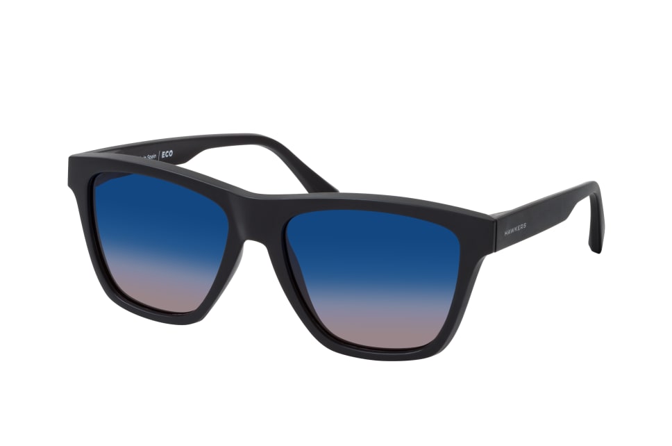 Hawkers ONE LS RAW HOLR21BITP, Quadratische Sonnenbrille Unisex. Farbe: Schwarz, Größe: Medium, Rahmentyp: FULLFRAME, Brillenbreite: 139mm, Glashöhe: 44mm, Material: Kunststoff. Stegbreite: 16mm. Glasfarbe: Blau. Mit UV400-Filter. Hersteller: Hawkers. Style: MODERN