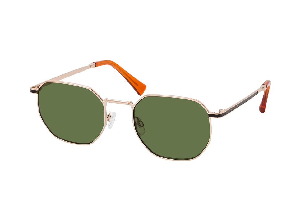 Hawkers SIXGON 130021, Runde Sonnenbrille Unisex. Farbe: Goldfarben, Größe: Medium, Rahmentyp: FULLFRAME, Brillenbreite: 134mm, Glashöhe: 42mm, Material: Metall. Stegbreite: 20mm. Glasfarbe: Grün. Mit UV400-Filter. Hersteller: Hawkers. Style: MODERN