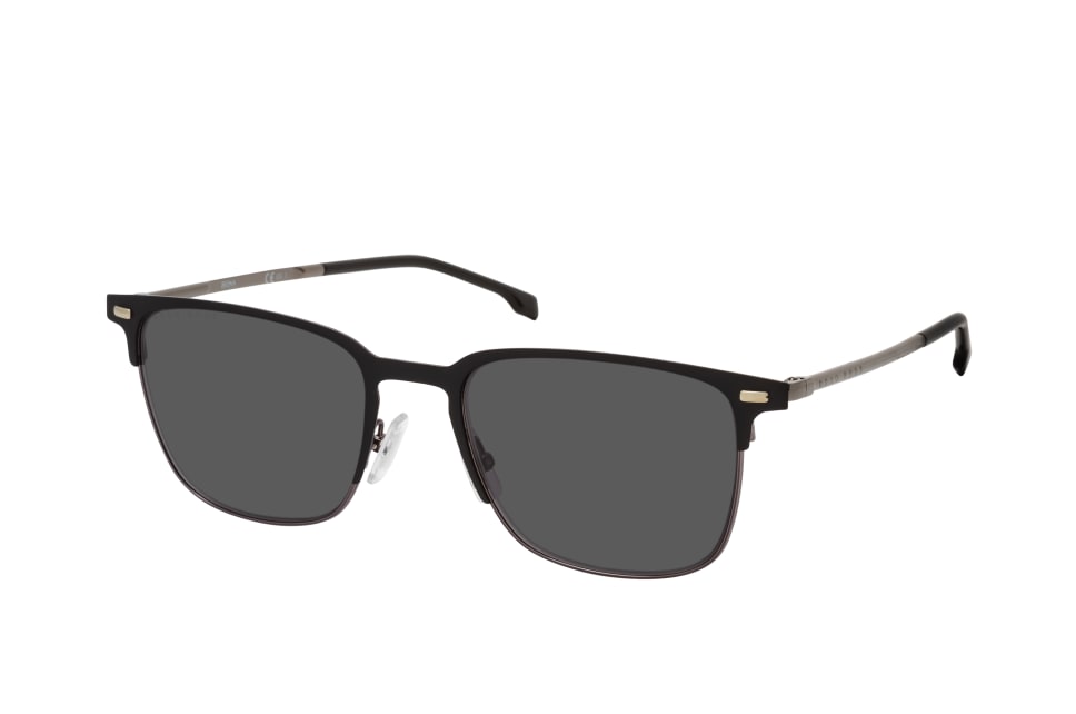 Hugo Boss BOSS 1019/S 003, Quadratische Sonnenbrille Herren. Farbe: Schwarz, Größe: Medium, Rahmentyp: FULLFRAME, Brillenbreite: 143mm, Glashöhe: 43mm, Material: Metall. Stegbreite: 19mm. Glasfarbe: Grau. Mit UV400-Filter. Hersteller: Safilo GmbH. Style: MODERN
