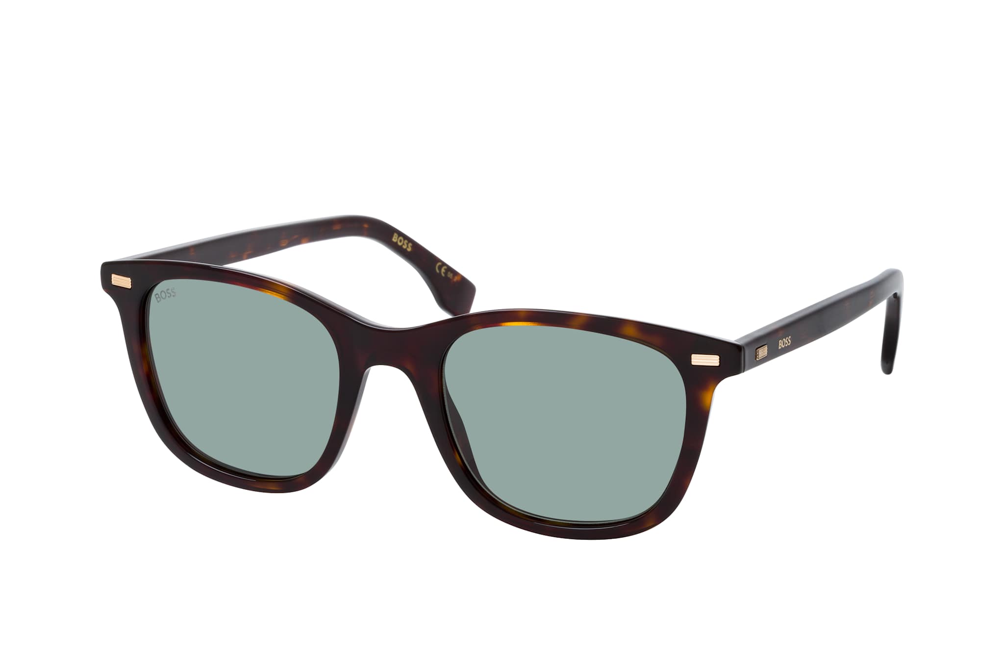 Hugo Boss BOSS 1366/S 086, Quadratische Sonnenbrille Herren. Farbe: Havana, Größe: Medium, Rahmentyp: FULLFRAME, Brillenbreite: 140mm, Glashöhe: 44mm, Material: Kunststoff. Stegbreite: 21mm. Glasfarbe: Grün. Mit UV400-Filter. Hersteller: Safilo GmbH. Style: CLASSIC