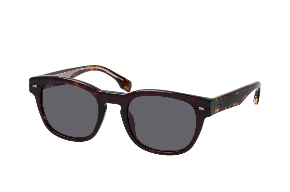 Hugo Boss BOSS 1380/S 086, Quadratische Sonnenbrille Herren. Farbe: Havana, Größe: Medium, Rahmentyp: FULLFRAME, Brillenbreite: 140mm, Glashöhe: 42mm, Material: Kunststoff. Stegbreite: 21mm. Glasfarbe: Grau. Mit UV400-Filter. Hersteller: Safilo GmbH. Style: CLASSIC