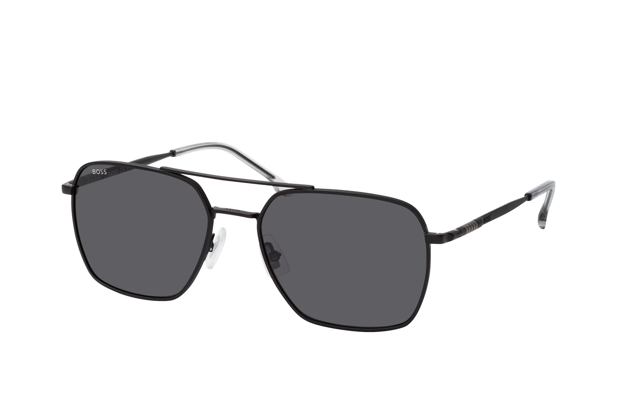 Hugo Boss BOSS 1414/S 003, Quadratische Sonnenbrille Herren. Farbe: Schwarz, Größe: Medium, Rahmentyp: FULLFRAME, Brillenbreite: 140mm, Glashöhe: 46mm, Material: Metall/Titan. Stegbreite: 18mm. Glasfarbe: Grau. Mit UV400-Filter. Hersteller: Safilo GmbH. Style: MODERN