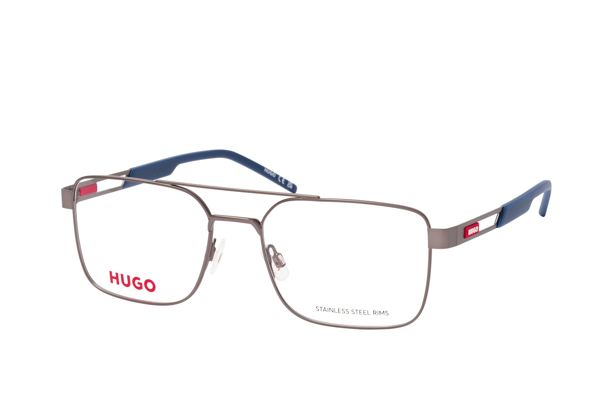 Hugo Boss HG 1388 R80, Quadratische Brille Herren. Farbe: Grau, Größe: Medium, Rahmentyp: FULLFRAME, Brillenbreite: 140mm, Glashöhe: 41mm, Material: Metall. Stegbreite: 18mm. Glasfarbe: . Glasmaterial: Metall/Metall.Hersteller: Safilo GmbH. Style: