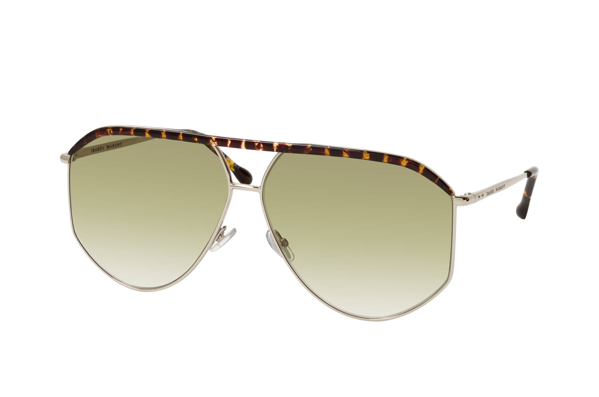 Isabel Marant IM 0139/S 8JD, Aviator Sonnenbrille Damen. Farbe: Havana, Größe: Medium, Rahmentyp: FULLFRAME, Brillenbreite: 145mm, Glashöhe: 57mm, Material: Metall. Stegbreite: 11mm. Glasfarbe: Grün. Mit UV400-Filter. Hersteller: Safilo GmbH. Style: