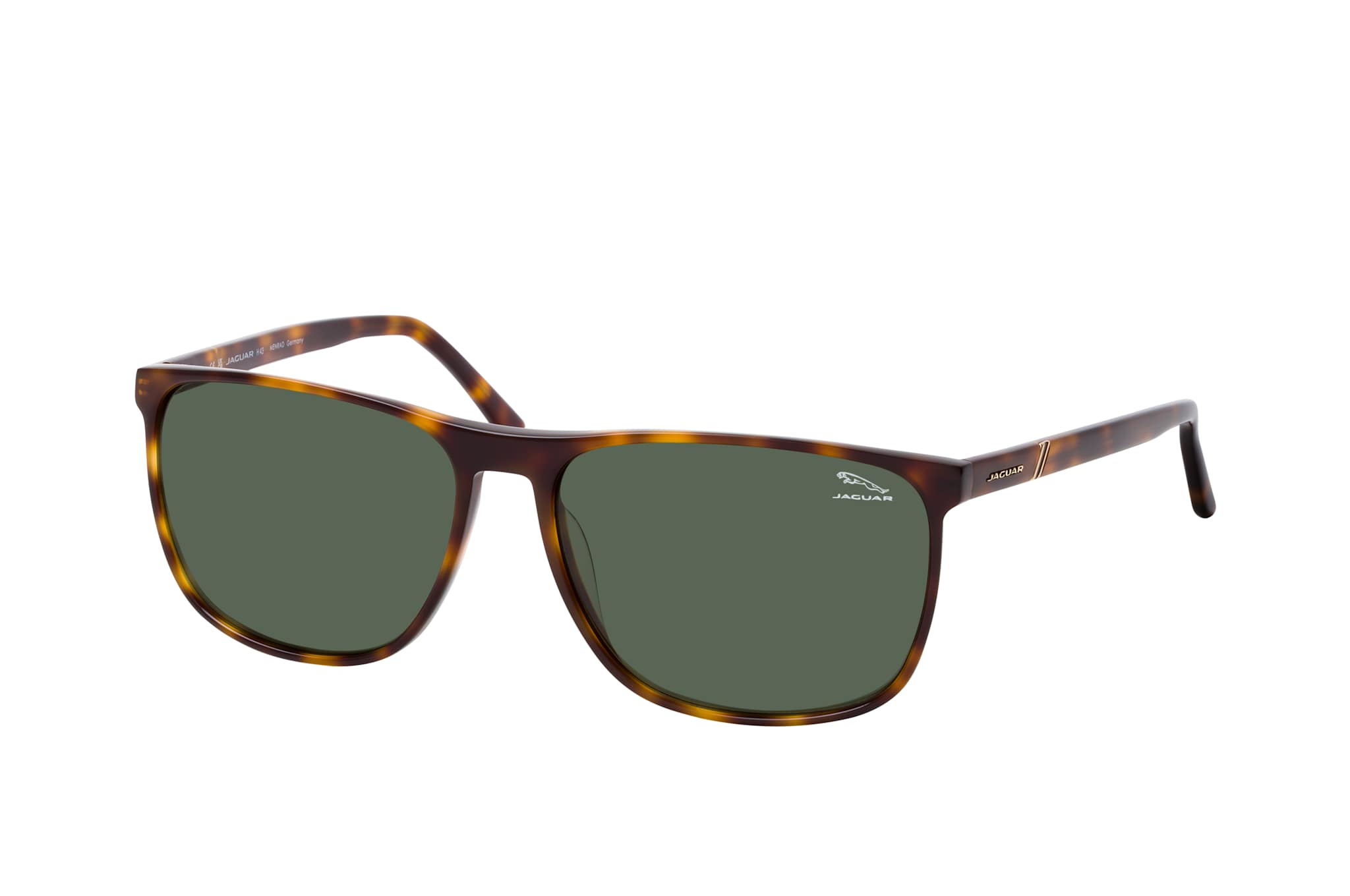 Jaguar 37122 4672, Quadratische Sonnenbrille Herren. Farbe: Havana, Größe: Medium, Rahmentyp: FULLFRAME, Brillenbreite: 138mm, Glashöhe: 45mm, Material: Kunststoff. Stegbreite: 15mm. Glasfarbe: Grün. Mit UV400-Filter. Hersteller: Menrad. Style: CLASSIC