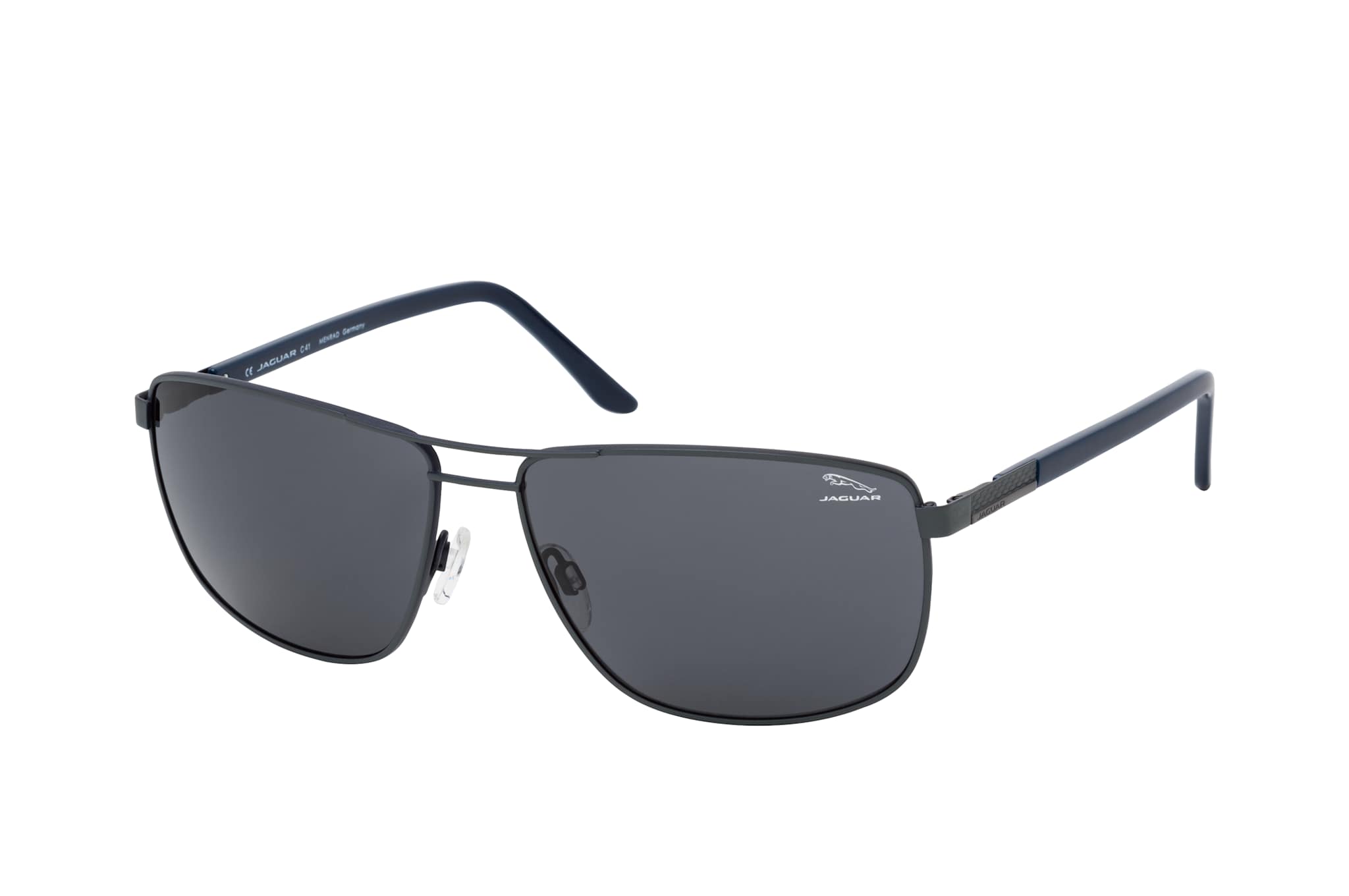 Jaguar 37357 1194, Quadratische Sonnenbrille Herren. Farbe: Grau, Größe: Medium, Rahmentyp: FULLFRAME, Brillenbreite: 144mm, Glashöhe: 46mm, Material: Metall. Stegbreite: 15mm. Glasfarbe: Grau. Mit UV400-Filter. Hersteller: Menrad. Style: CLASSIC