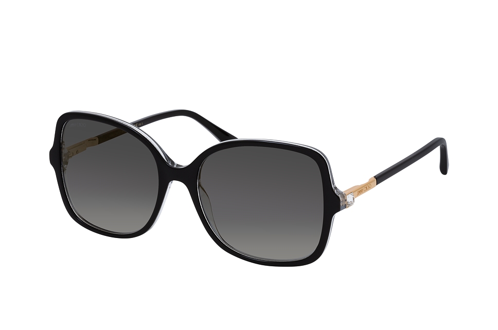 Jimmy Choo JUDY/S 807, Quadratische Sonnenbrille Damen. Farbe: Schwarz, Größe: Medium, Rahmentyp: FULLFRAME, Brillenbreite: 144mm, Glashöhe: 52mm, Material: Kunststoff. Stegbreite: 18mm. Glasfarbe: Grau. Mit UV400-Filter. Hersteller: Safilo GmbH. Style: EXTRAVAGANT