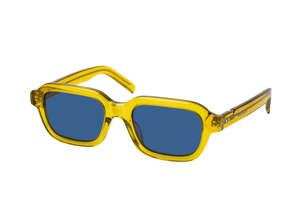 Kenzo KZ 40129 I 39V, Quadratische Sonnenbrille Unisex. Farbe: Gelb, Größe: Medium, Rahmentyp: FULLFRAME, Brillenbreite: 143mm, Glashöhe: 36mm, Material: Kunststoff. Stegbreite: 19mm. Glasfarbe: Blau. Mit UV400-Filter. Hersteller: Thelios. Style: MODERN
