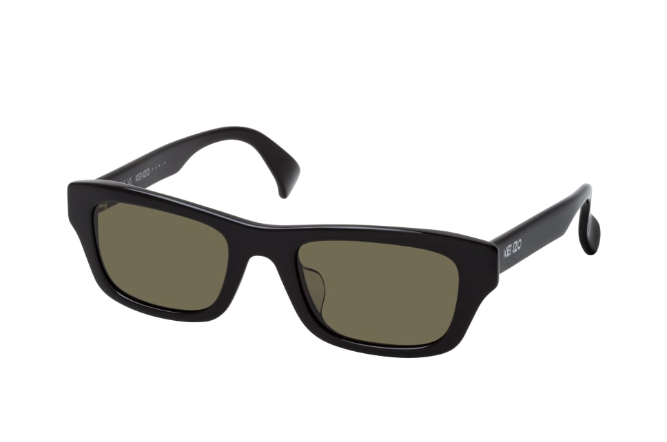 Kenzo KZ 40154 U 01N, Rechteckige Sonnenbrille Unisex. Farbe: Schwarz, Größe: Medium, Rahmentyp: FULLFRAME, Brillenbreite: 140mm, Glashöhe: 34mm, Material: Kunststoff. Stegbreite: 21mm. Glasfarbe: Grün. Mit UV400-Filter. Hersteller: Thelios. Style: MODERN