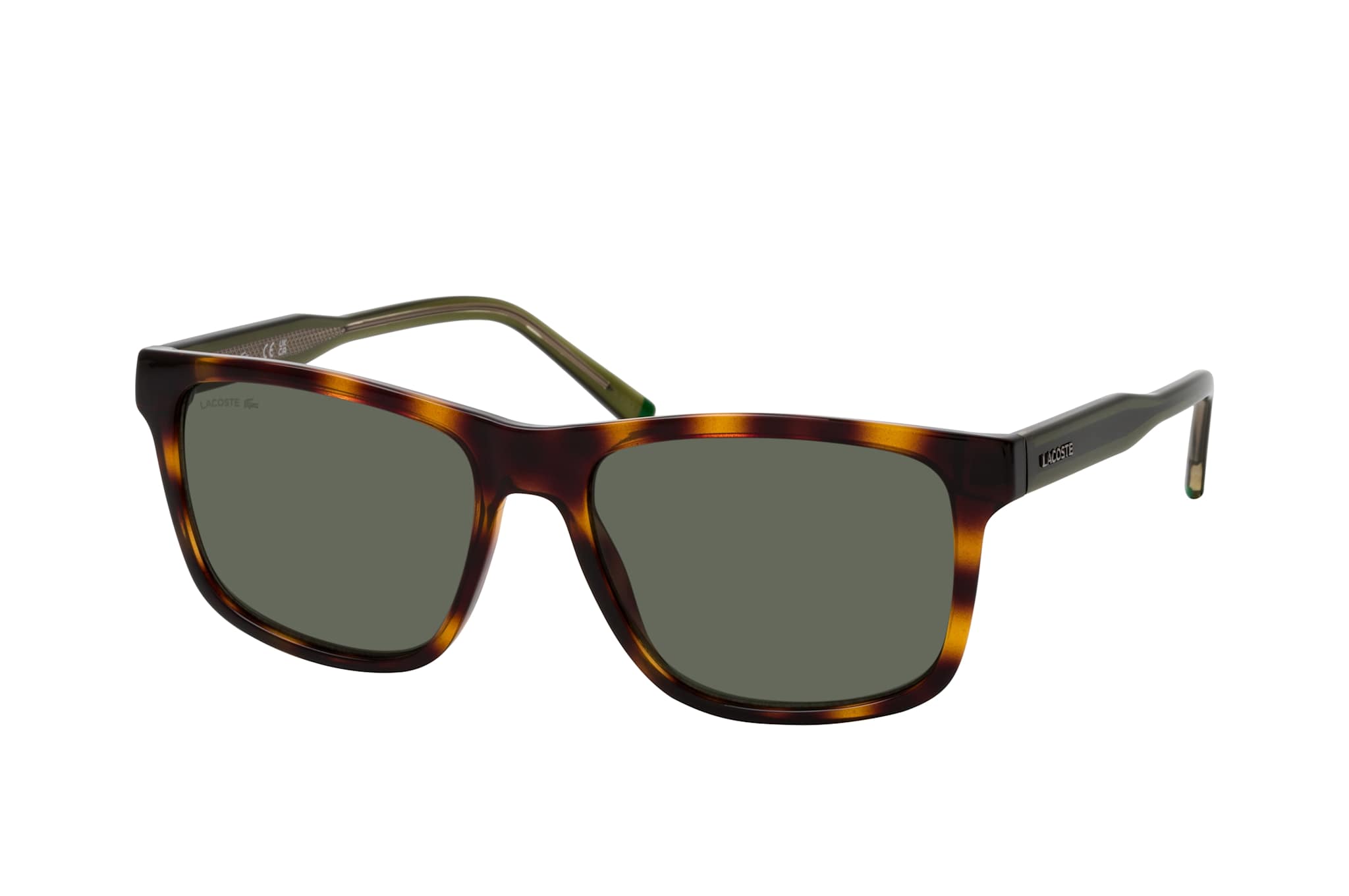 Lacoste L 6025S 214, Quadratische Sonnenbrille Herren. Farbe: Havana, Größe: Medium, Rahmentyp: FULLFRAME, Brillenbreite: 144mm, Glashöhe: 44mm, Material: Kunststoff. Stegbreite: 17mm. Glasfarbe: Grün. Mit UV400-Filter. Hersteller: Marchon Germany GmbH. Style: