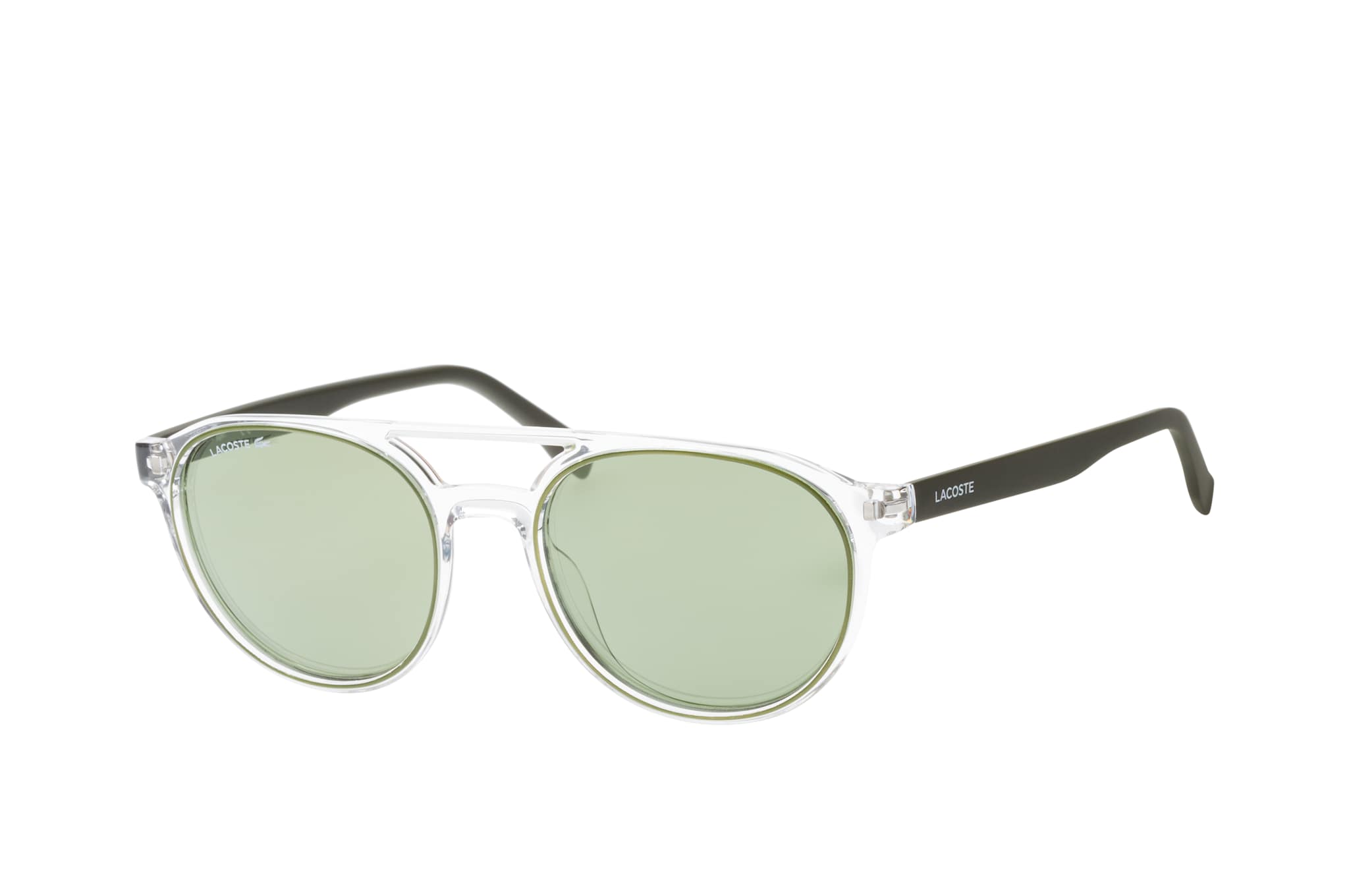 Lacoste L 881S 317, Runde Sonnenbrille Unisex. Farbe: Transparent, Größe: Medium, Rahmentyp: FULLFRAME, Brillenbreite: 138mm, Glashöhe: 45mm, Material: Kunststoff. Stegbreite: 18mm. Glasfarbe: Grün. Mit UV400-Filter. Hersteller: Marchon Germany GmbH. Style: MODERN