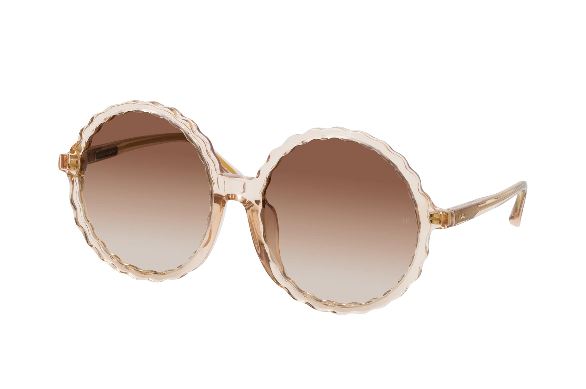 Linda Farrow LFL 1354 SUN C3, Runde Sonnenbrille Damen. Farbe: Beige, Größe: Medium, Rahmentyp: FULLFRAME, Brillenbreite: 159mm, Glashöhe: 62mm, Material: Kunststoff. Stegbreite: 19mm. Glasfarbe: Braun. Mit UV400-Filter. Hersteller: Bally Sunglass&Optical Company Ltd.. Style: EXTRAVAGANT