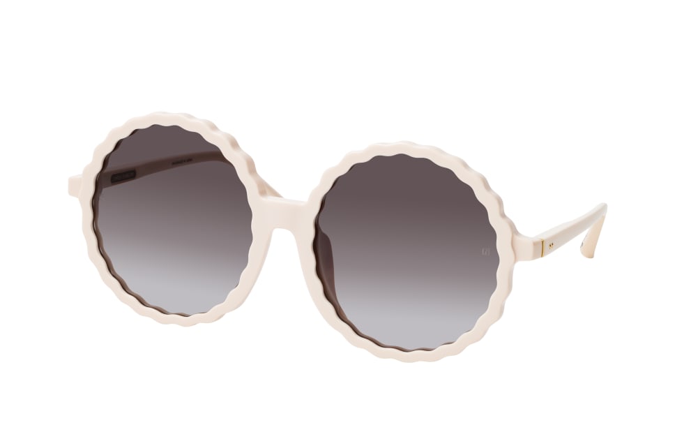 Linda Farrow Nova LFL 1354 SUN C4, Runde Sonnenbrille Damen. Farbe: Weiss, Größe: Medium, Rahmentyp: FULLFRAME, Brillenbreite: 159mm, Glashöhe: 62mm, Material: Kunststoff. Stegbreite: 19mm. Glasfarbe: Grau. Mit UV400-Filter. Hersteller: Bally Sunglass&Optical Company Ltd.. Style: EXTRAVAGANT