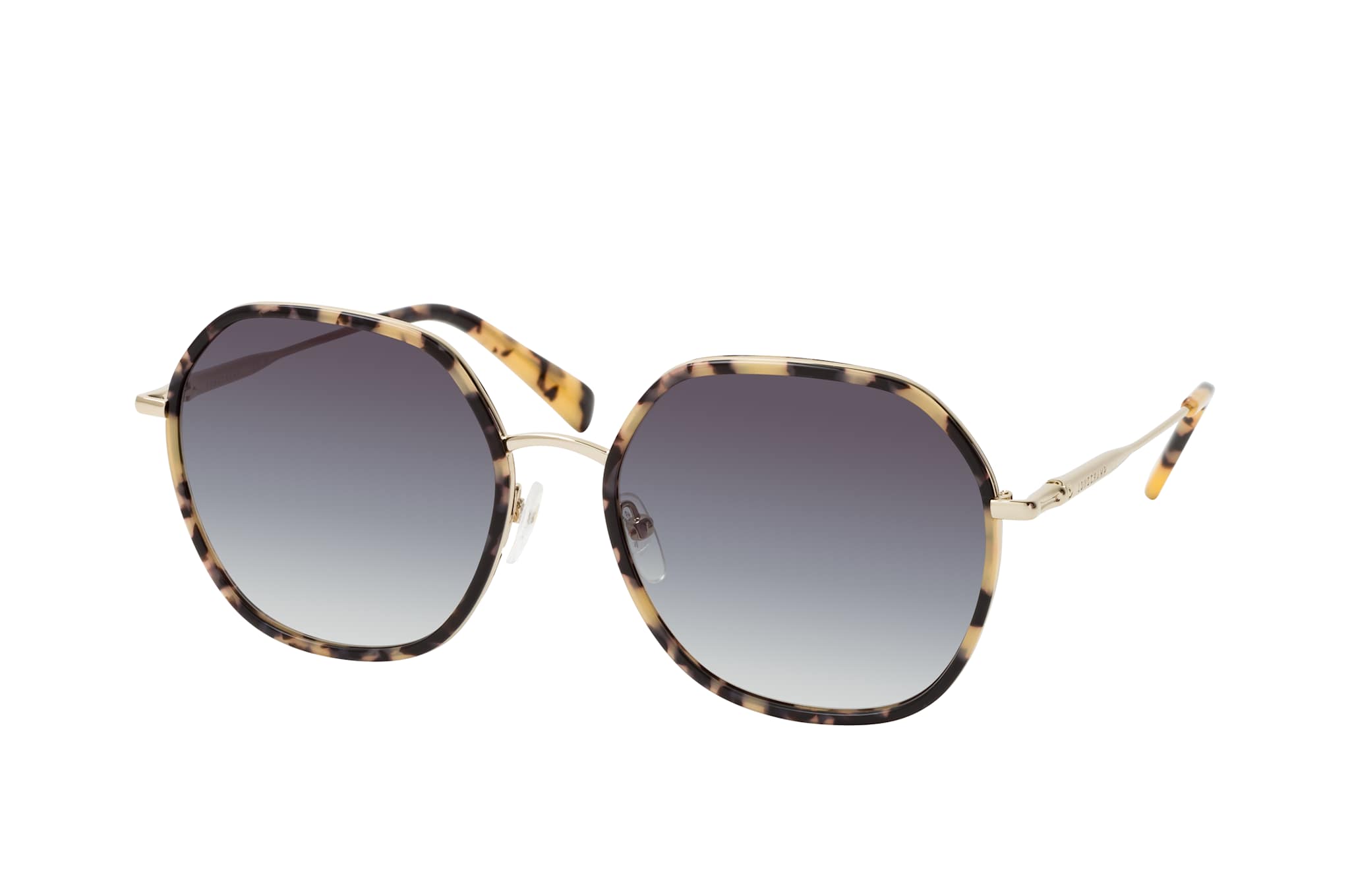 Longchamp LO 163S 743, Quadratische Sonnenbrille Damen. Farbe: Goldfarben, Größe: Medium, Rahmentyp: FULLFRAME, Brillenbreite: 147mm, Glashöhe: 54mm, Material: Kunststoff/Metall. Stegbreite: 18mm. Glasfarbe: Grau. Mit UV400-Filter. Hersteller: Marchon Germany GmbH. Style: