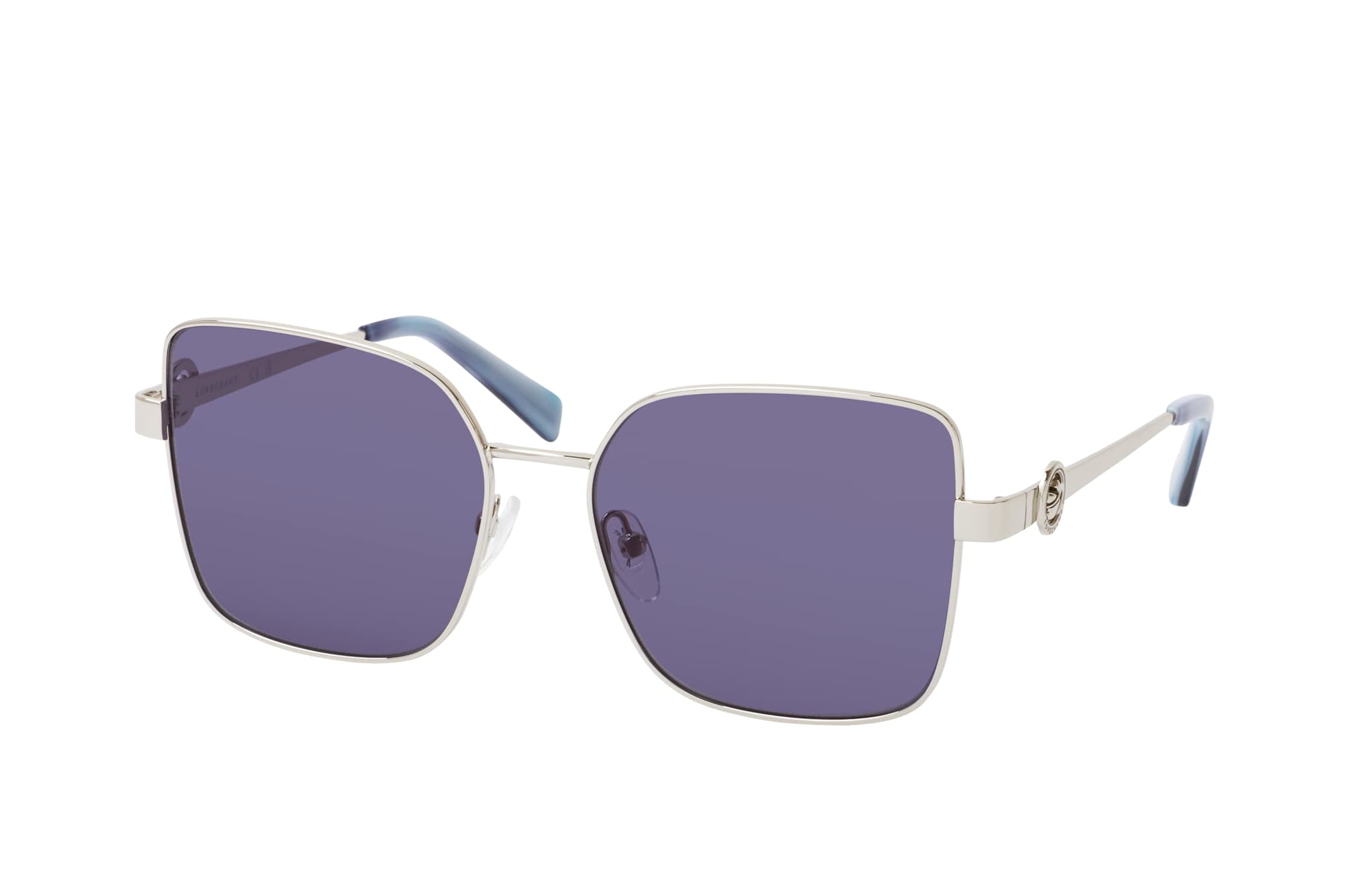 Longchamp LO 181S 044, Quadratische Sonnenbrille Damen. Farbe: Silber, Größe: Medium, Rahmentyp: FULLFRAME, Brillenbreite: 141mm, Glashöhe: 52mm, Material: Metall. Stegbreite: 17mm. Glasfarbe: Blau. Mit UV400-Filter. Hersteller: Marchon Germany GmbH. Style: