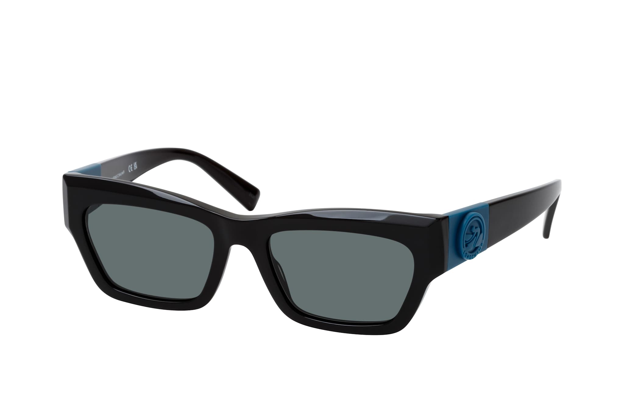 Longchamp LO 763S 001, Rechteckige Sonnenbrille Damen. Farbe: Schwarz, Größe: Medium, Rahmentyp: FULLFRAME, Brillenbreite: 142mm, Glashöhe: 35mm, Material: Kunststoff. Stegbreite: 18mm. Glasfarbe: Grün. Mit UV400-Filter. Hersteller: Marchon Germany GmbH. Style: