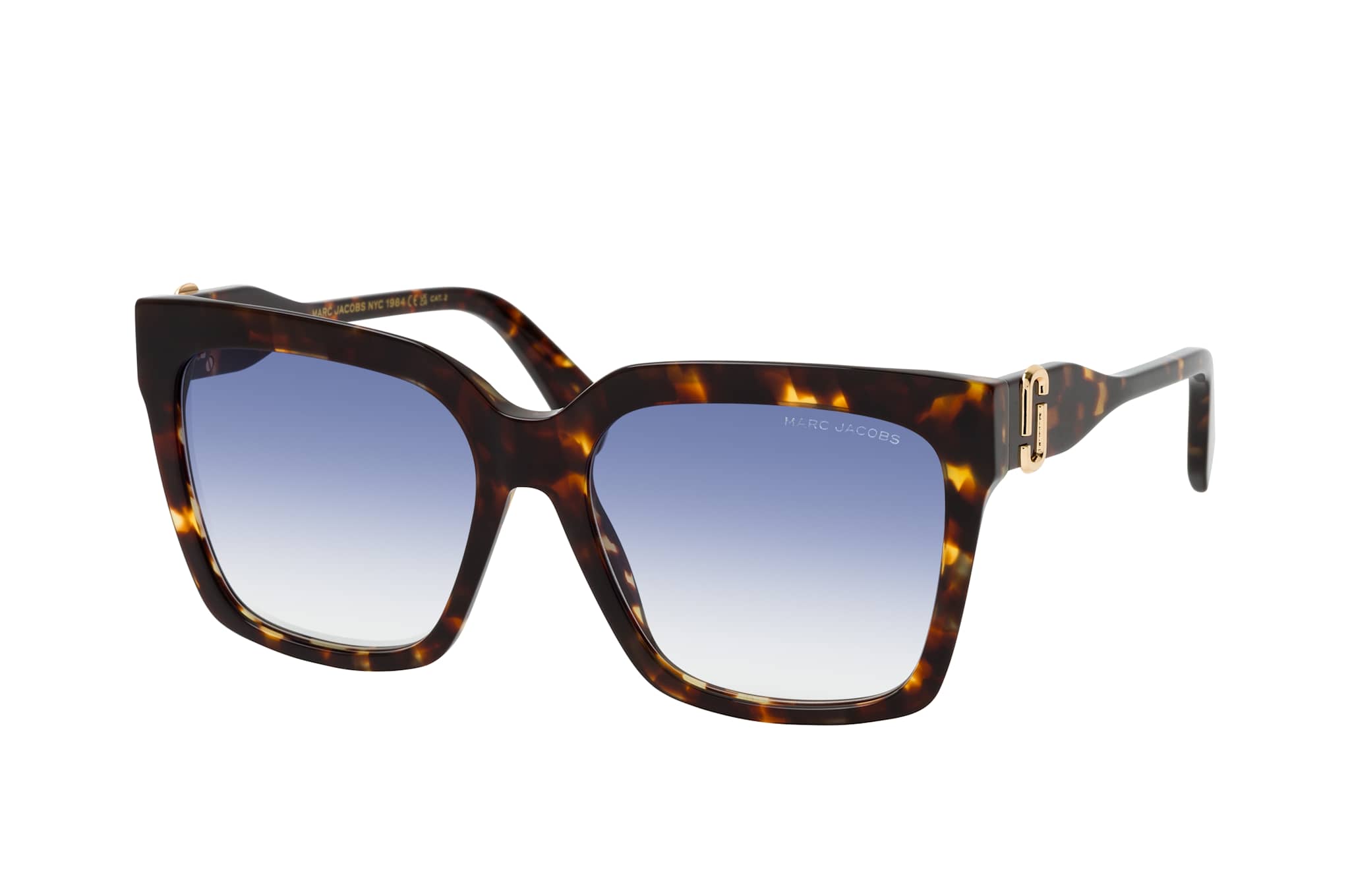 Marc Jacobs MARC 764/S 086, Quadratische Sonnenbrille Damen. Farbe: Havana, Größe: Medium, Rahmentyp: FULLFRAME, Brillenbreite: 143mm, Glashöhe: 50mm, Material: Kunststoff. Stegbreite: 17mm. Glasfarbe: Blau. Mit UV400-Filter. Hersteller: Safilo GmbH. Style: