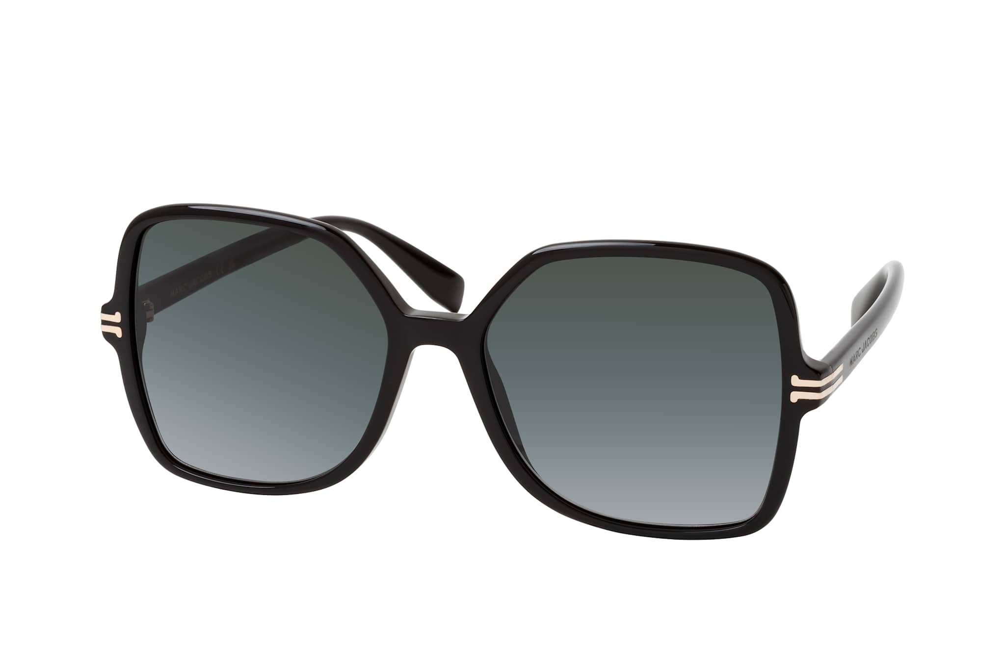Marc Jacobs MJ 1105/S 807, Quadratische Sonnenbrille Damen. Farbe: Schwarz, Größe: Medium, Rahmentyp: FULLFRAME, Brillenbreite: 144mm, Glashöhe: 53mm, Material: Kunststoff. Stegbreite: 17mm. Glasfarbe: Grau. Mit UV400-Filter. Hersteller: Safilo GmbH. Style: