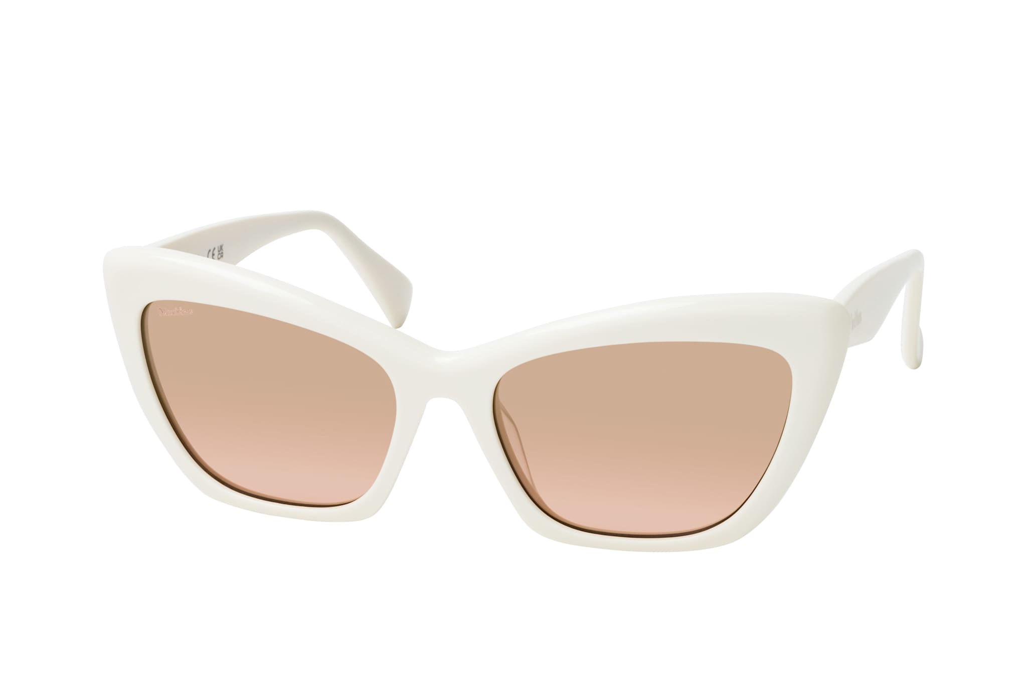 Max Mara MM 0063 21G, Cat Eye Sonnenbrille Damen. Farbe: Weiss, Größe: Medium, Rahmentyp: FULLFRAME, Brillenbreite: 149mm, Glashöhe: 41mm, Material: Kunststoff. Stegbreite: 18mm. Glasfarbe: Braun. Mit UV400-Filter. Hersteller: Marcolin (Deutschland) GmbH. Style: