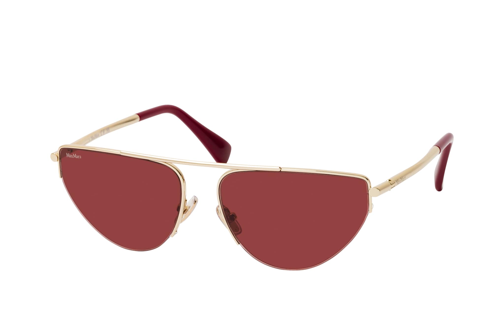 Max Mara MM 0122 32S, Cat Eye Sonnenbrille Damen. Farbe: Goldfarben, Größe: Medium, Rahmentyp: HALFFRAME, Brillenbreite: 140mm, Glashöhe: 42mm, Material: Metall. Stegbreite: 15mm. Glasfarbe: Rot. Mit UV400-Filter. Hersteller: Marcolin (Deutschland) GmbH. Style: