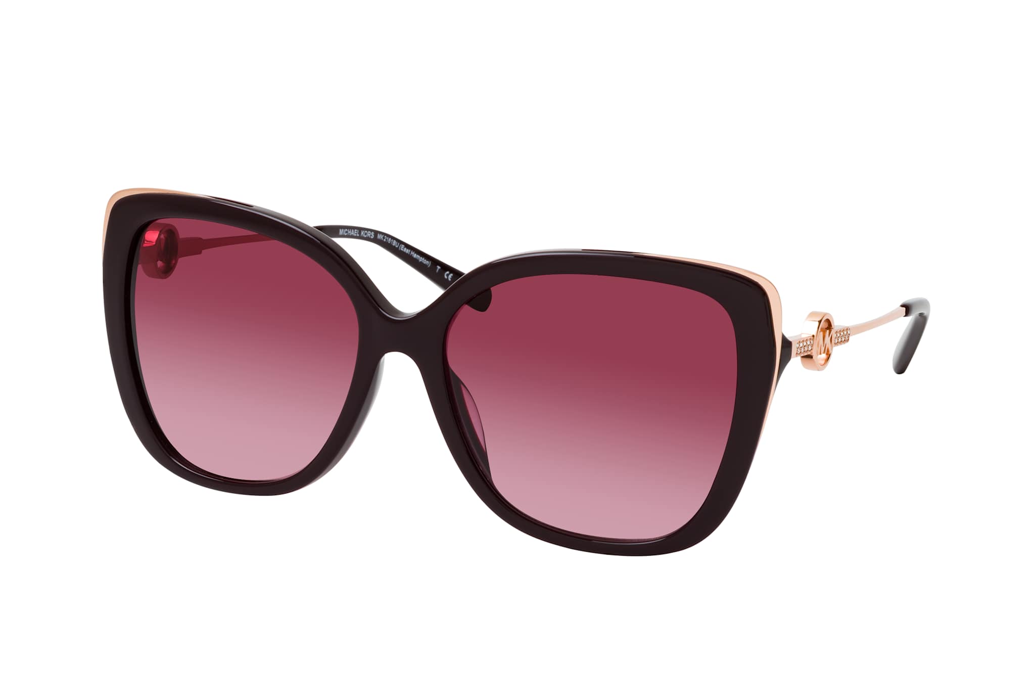 Michael Kors East Hampton MK 2161BU 33448H, Cat Eye Sonnenbrille Damen. Farbe: Lila, Größe: Medium, Rahmentyp: FULLFRAME, Brillenbreite: 138mm, Glashöhe: 51mm, Material: Kunststoff/Metall. Stegbreite: 16mm. Glasfarbe: Lila. Mit UV400-Filter. Hersteller: Luxottica Group S.p.A. Style: MODERN