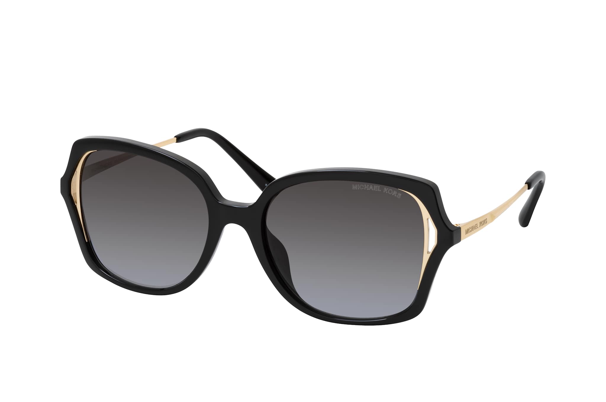 Michael Kors INTER MK 2153U 30058G, Quadratische Sonnenbrille Damen. Farbe: Schwarz, Größe: Medium, Rahmentyp: FULLFRAME, Brillenbreite: 144mm, Glashöhe: 49mm, Material: Kunststoff/Metall. Stegbreite: 18mm. Glasfarbe: Grau. Mit UV400-Filter. Hersteller: Luxottica Group S.p.A. Style: MODERN