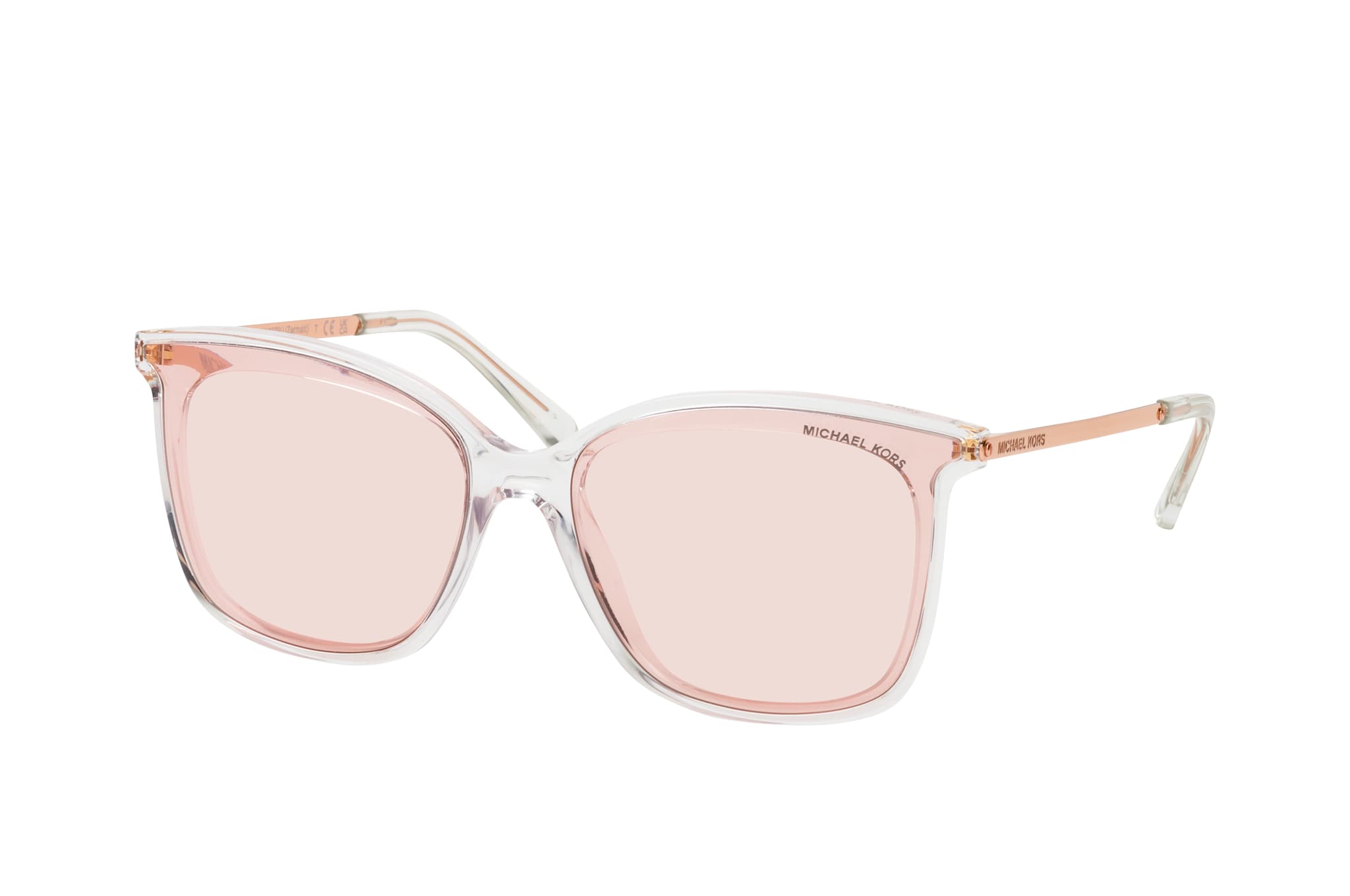 Michael Kors MK 2079U 30155, Quadratische Sonnenbrille Damen. Farbe: Transparent, Größe: Medium, Rahmentyp: FULLFRAME, Brillenbreite: 142mm, Glashöhe: 49mm, Material: Kunststoff/Metall. Stegbreite: 17mm. Glasfarbe: Rosa. Mit UV400-Filter. Hersteller: Luxottica Group S.p.A. Style: