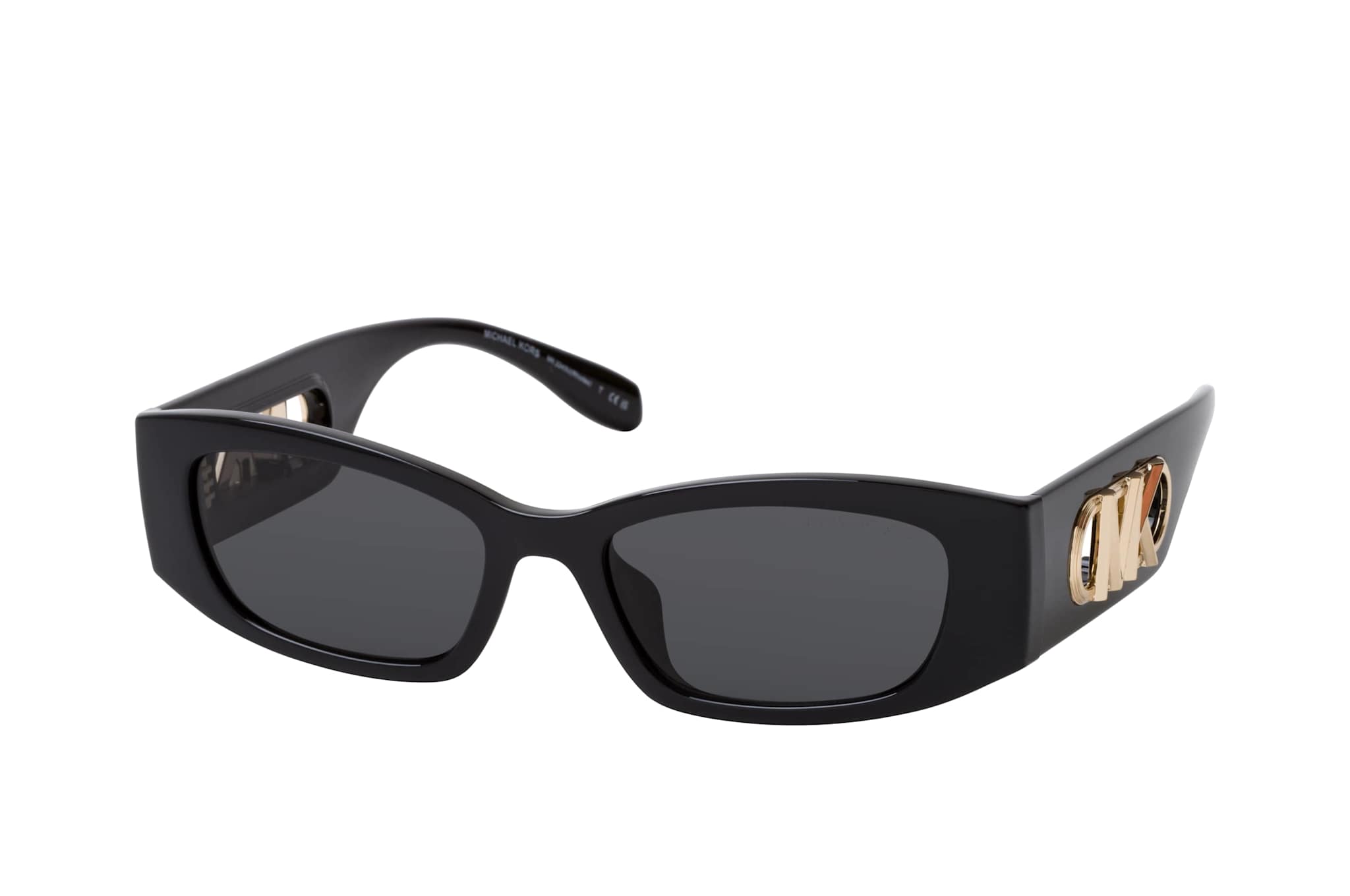 Michael Kors MK 2243U 300587, Rechteckige Sonnenbrille Damen. Farbe: Schwarz, Größe: Medium, Rahmentyp: FULLFRAME, Brillenbreite: 140mm, Glashöhe: 33mm, Material: Kunststoff. Stegbreite: 17mm. Glasfarbe: Grau. Mit UV400-Filter. Hersteller: Luxottica Group S.p.A. Style: