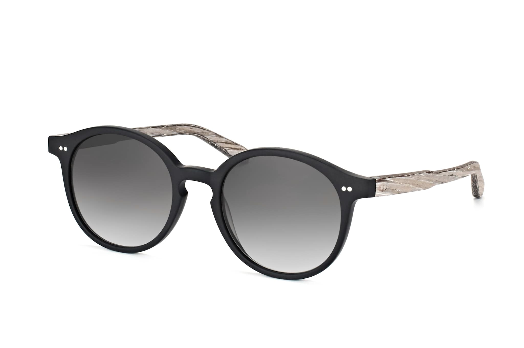 Mister Spex Collection Steve 2036 001, Runde Sonnenbrille Unisex. Farbe: Schwarz, Größe: Medium, Rahmentyp: FULLFRAME, Brillenbreite: 144mm, Glashöhe: 47mm, Material: Kunststoff/Holz. Stegbreite: 20mm. Glasfarbe: Grau. Mit UV400-Filter. Hersteller: MasterDis GmbH. Style: CLASSIC