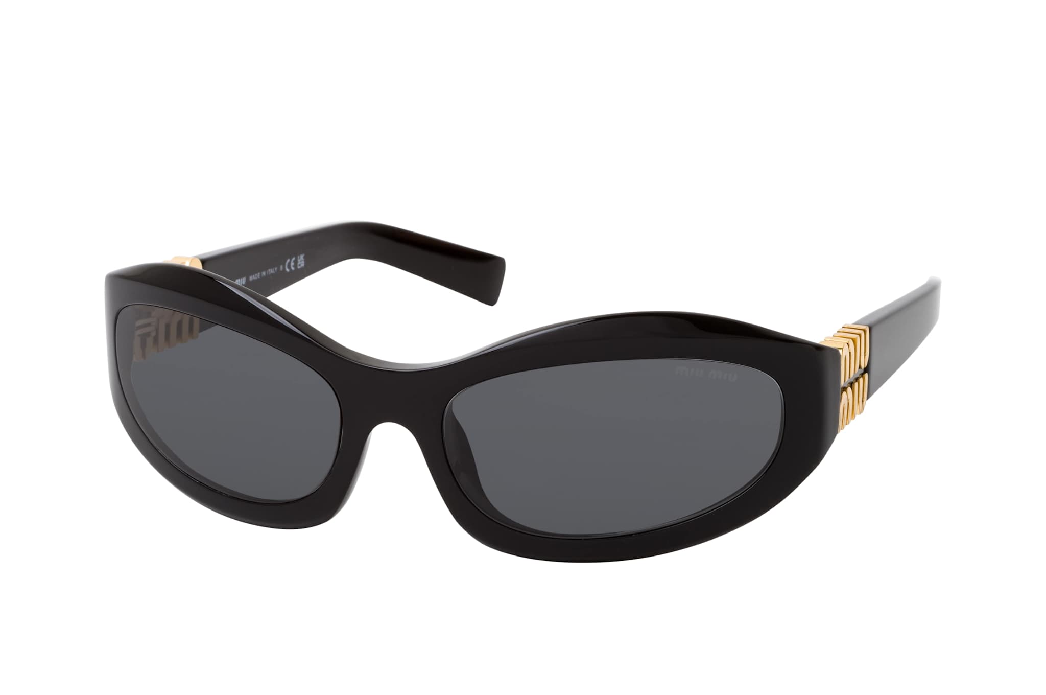Miu Miu MU 14ZS 16K08Z, Sonnenbrille Damen. Farbe: Schwarz, Größe: Medium, Rahmentyp: FULLFRAME, Brillenbreite: 139mm, Glashöhe: 32mm, Material: Kunststoff/Metall. Stegbreite: 17mm. Glasfarbe: Grau. Mit UV400-Filter. Hersteller: Luxottica Group S.p.A. Style: