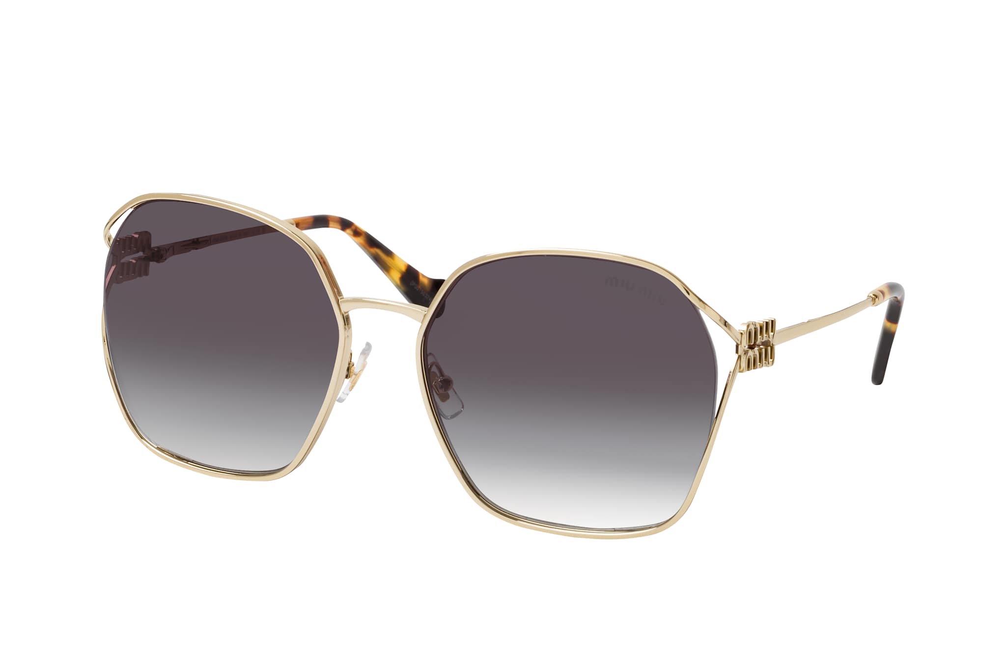 Miu Miu MU 52WS ZVN5D1, Quadratische Sonnenbrille Damen. Farbe: Goldfarben, Größe: Medium, Rahmentyp: FULLFRAME, Brillenbreite: 144mm, Glashöhe: 57mm, Material: Metall. Stegbreite: 19mm. Glasfarbe: Grau. Mit UV400-Filter. Hersteller: Luxottica Group S.p.A. Style: EXTRAVAGANT