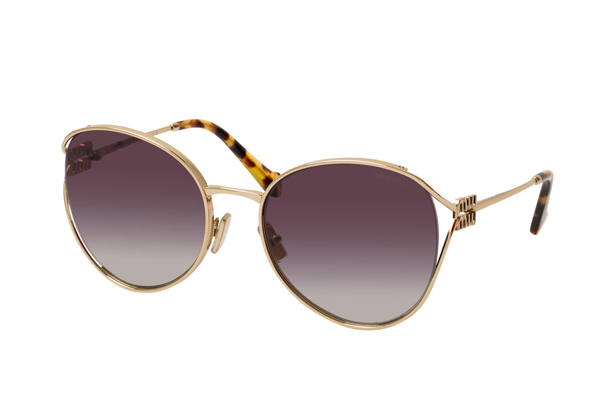 Miu Miu MU 53YS ZVN5D1, Runde Sonnenbrille Damen. Farbe: Goldfarben, Größe: Medium, Rahmentyp: FULLFRAME, Brillenbreite: 136mm, Glashöhe: 55mm, Material: Metall. Stegbreite: 20mm. Glasfarbe: Grau. Mit UV400-Filter. Hersteller: Luxottica Group S.p.A. Style: