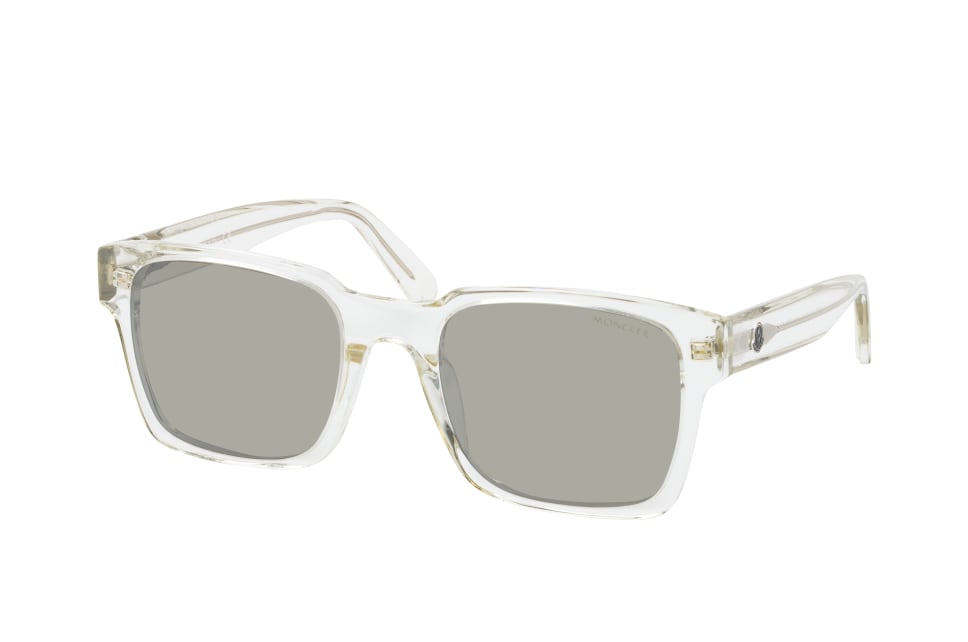 MONCLER Arcsecond ML 0210 26Q, Quadratische Sonnenbrille Herren. Farbe: Transparent, Größe: Medium, Rahmentyp: FULLFRAME, Brillenbreite: 142mm, Glashöhe: 45mm, Material: Kunststoff. Stegbreite: 21mm. Glasfarbe: Grün. Mit UV400-Filter. Hersteller: Marcolin (Deutschland) GmbH. Style: MODERN