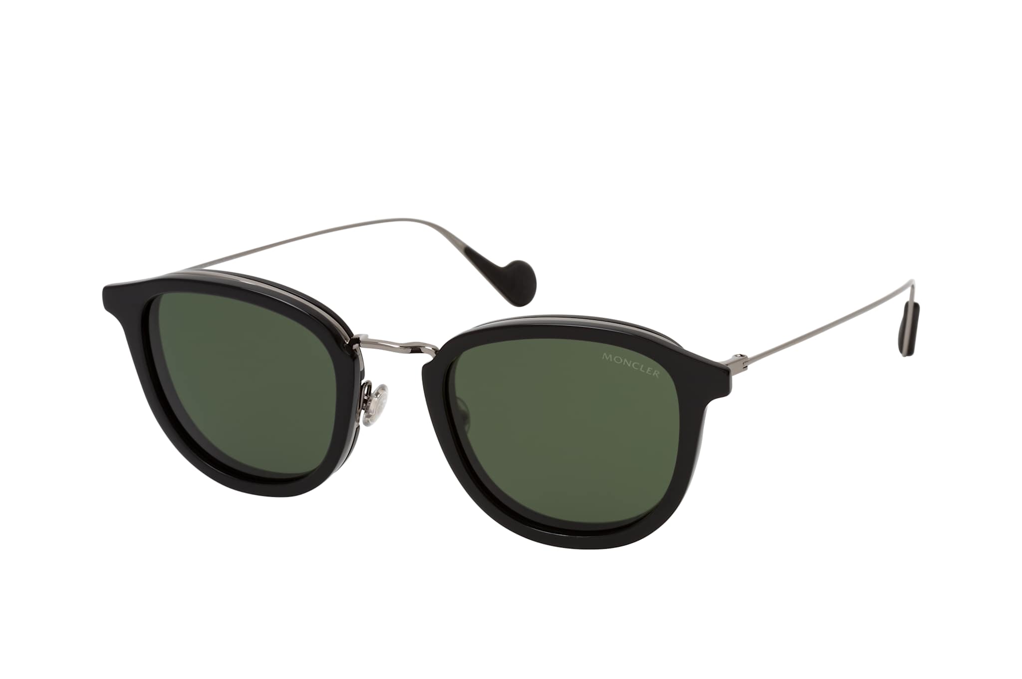 MONCLER ML 0126 01R, Runde Sonnenbrille Unisex. Farbe: Schwarz, Größe: Medium, Rahmentyp: FULLFRAME, Brillenbreite: 140mm, Glashöhe: 43mm, Material: Metall. Stegbreite: 23mm. Glasfarbe: Grün. Mit UV400-Filter. Hersteller: Marcolin SpA. Style: MODERN