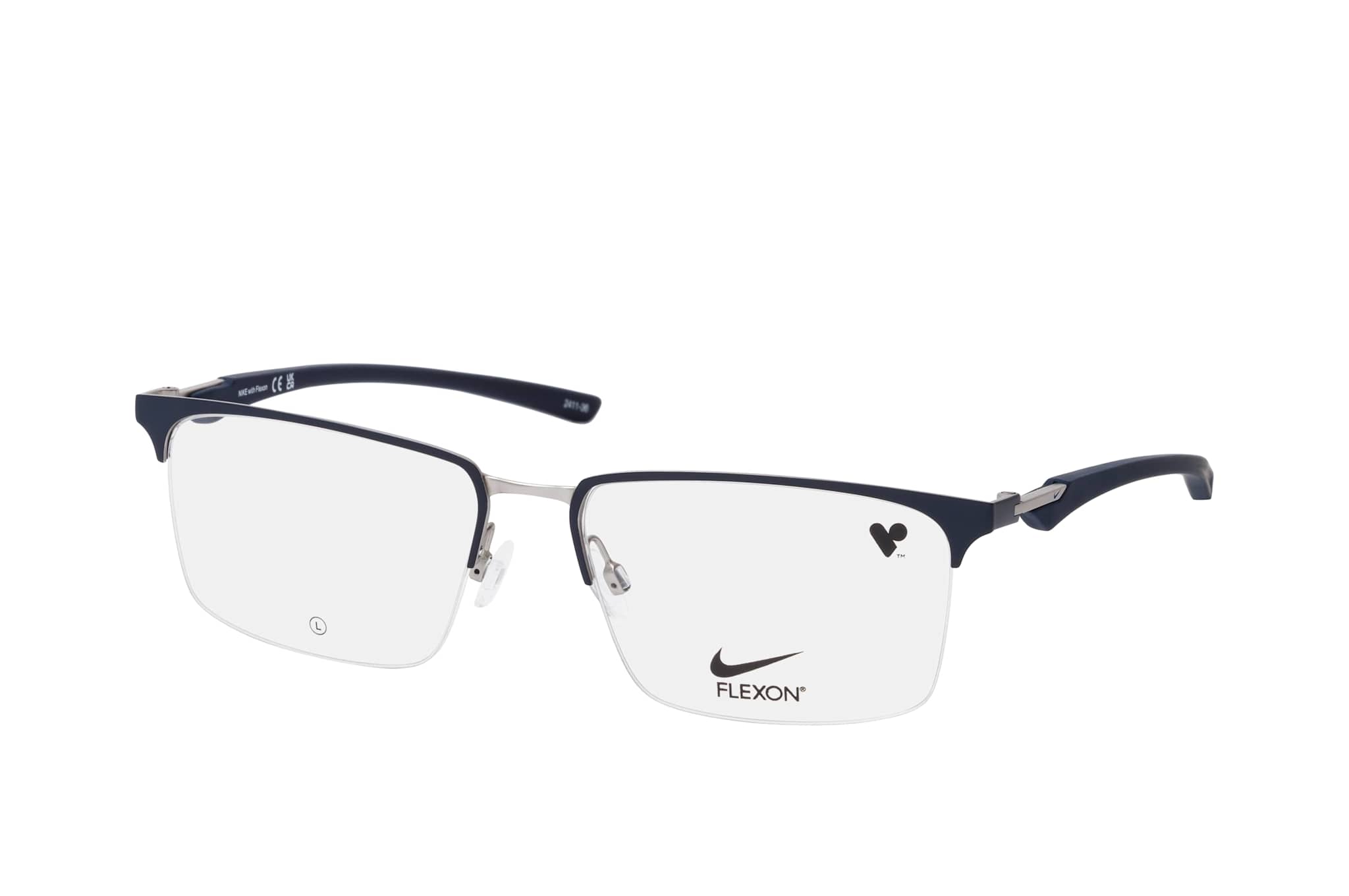 Nike NIKE 4318 411, Rechteckige Brille Herren. Farbe: Dunkelblau, Größe: Medium, Rahmentyp: FRAMELESS, Brillenbreite: 140mm, Glashöhe: 38mm, Material: Titan. Stegbreite: 16mm. Glasfarbe: . Glasmaterial: Titan/Titan.Hersteller: Marchon Germany GmbH. Style: